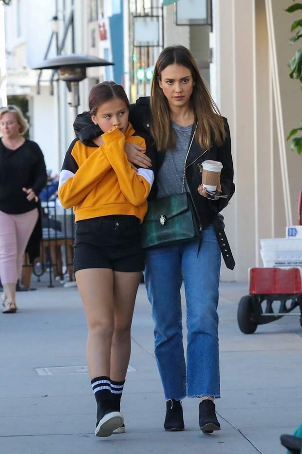 Джессика Альба умеет сочетать простые вещи, чтобы они выглядели очень модно. На прогулку с дочерью по Беверли-Хиллз в эту пятницу актриса надела удобные синие джинсы, серую футболку свободного кроя и кожаную куртку-косуху. Дополнить образ звезде помогли замшевые ботильоны на небольшом каблуке и зеленая сумка кросс-боди на цепочке.
