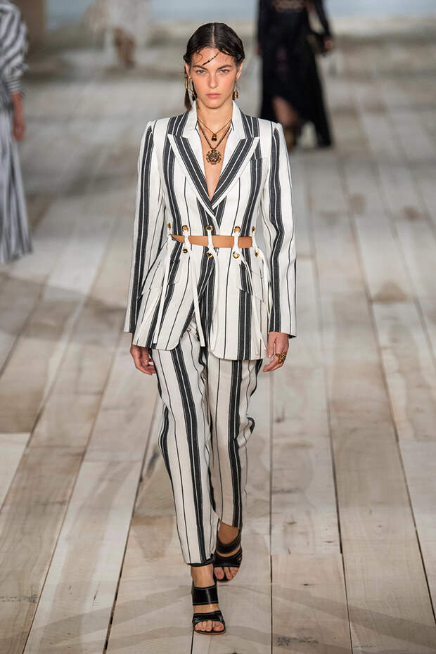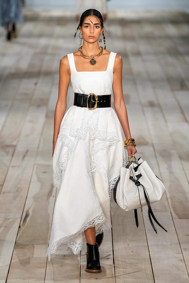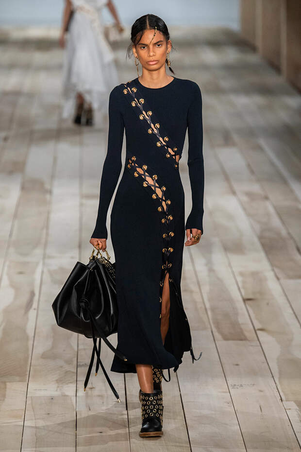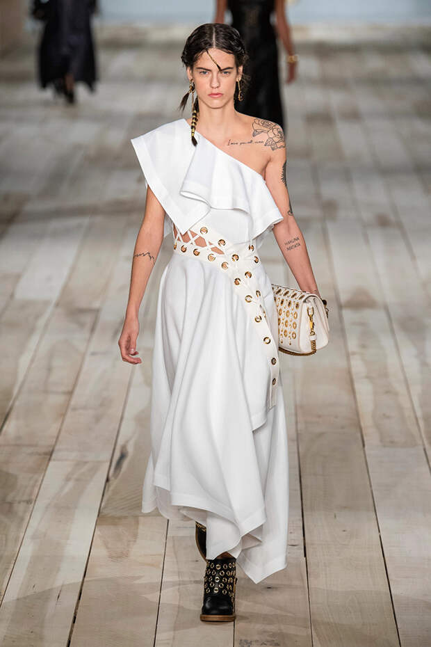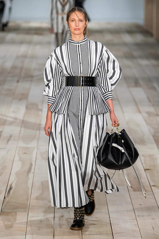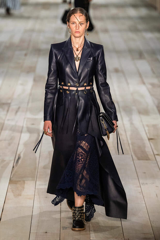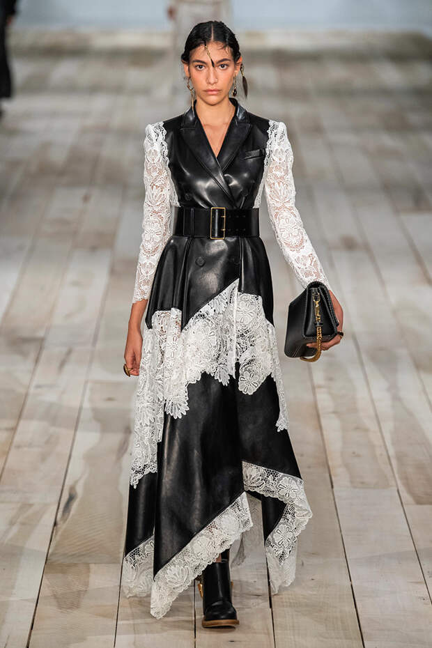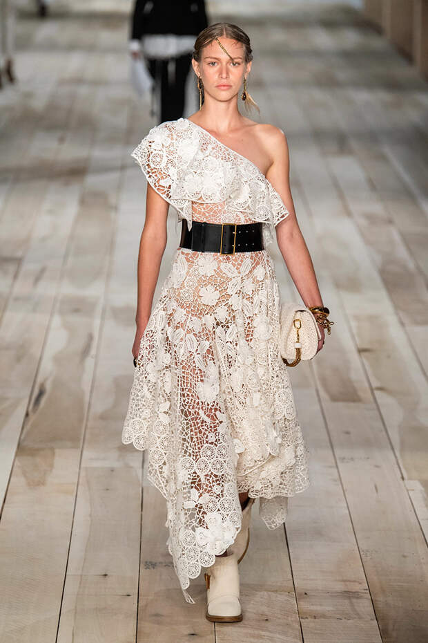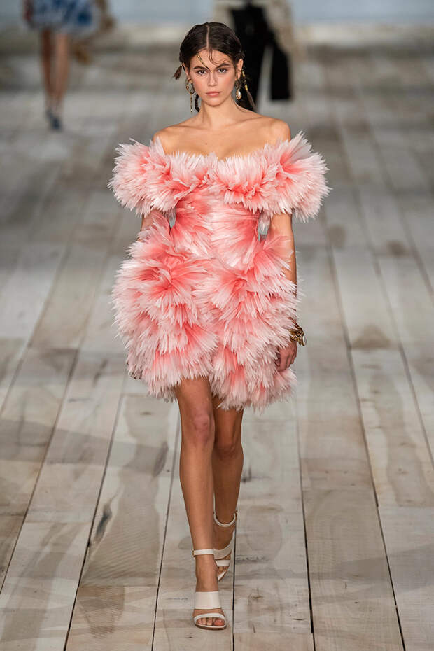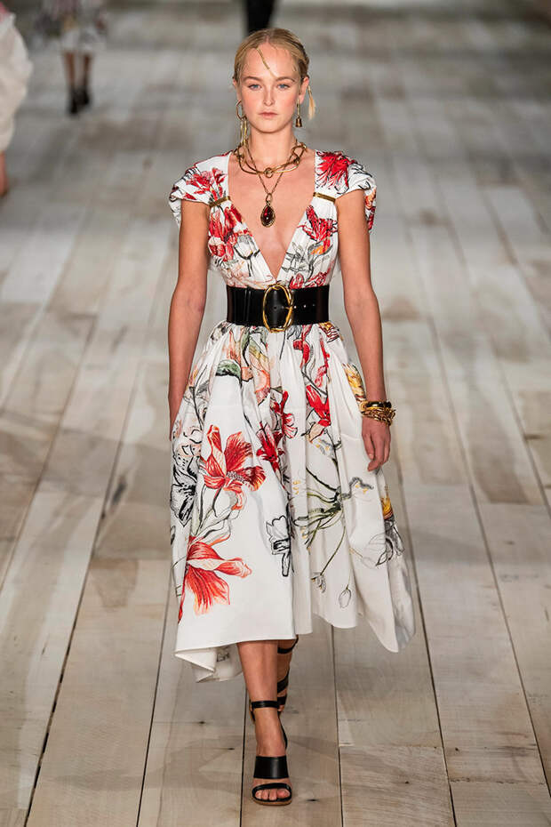 Объединяли их обязательные отсылки к историческому костюму, пышные рукава, использование ручных прикладных техник, относительная закрытость и обильное использование декоративных элементов: от кружева до оборок. И это как минимум.Но если сама одежда была просто красивой, в общем не концептуальной, (Саре Бертон не повезло — в сравнении с самим Александром Маккуином концептуалистом в принципе останется мало кто) то у всего показа концепт был — и чтобы удержаться на заданной линии, Бертон не могла в принципе сказать ничего другого. "Мне нравится идея того, что люди проводят время вместе, чтобы создать что-то общее. Это время не только для работы, но и для встреч, разговоров, в целом единения с миром". Воссоздать такую ситуацию дизайнер решила прямо на подиуме. И на поклон вышла со всей командой, работавшей на коллекцией — в окружении тех людей, которые в мире моды обычно остаются невидимыми. Как минимум то же самое на последней неделе высокой моды совсем недавно делал Пьерпаоло Пиччоли с коллегами из Valentino. Но жест все равно красивый — заставляет поверить в человечность вечно суровой, холодной моды.