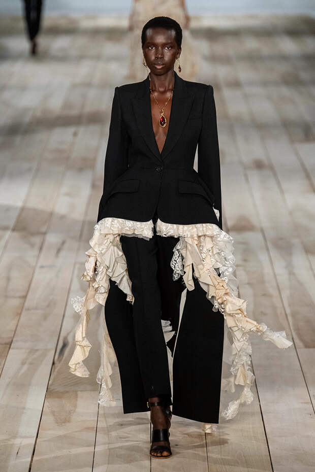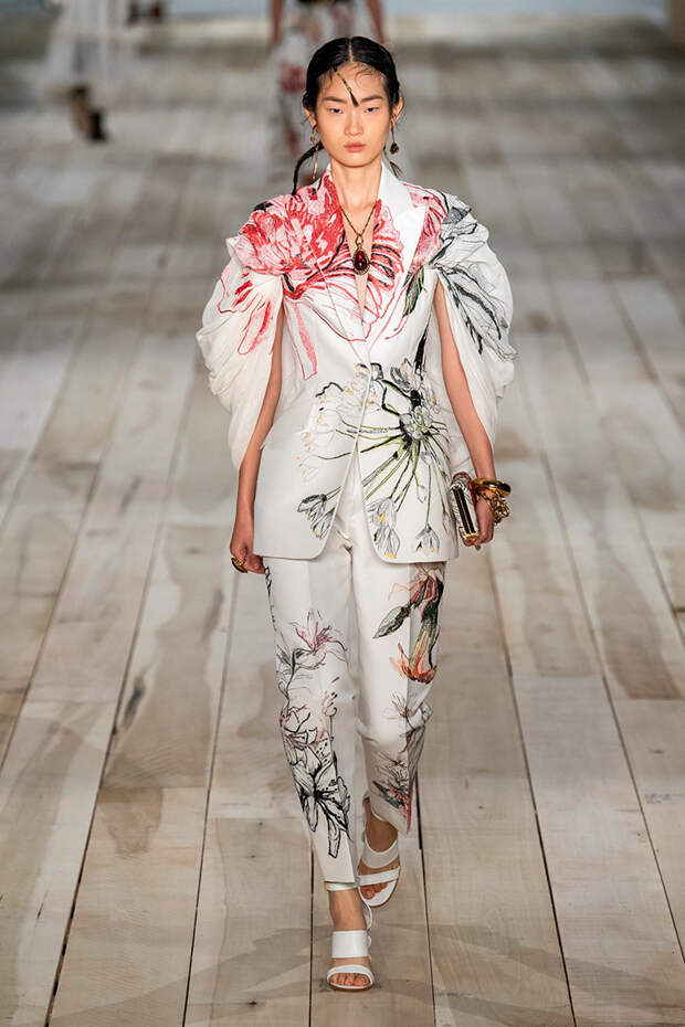 "У каждого образа — собственная история. Единственное, что связывает все эти предметы - это то время, которое было затрачено на их создание", — написала в заметках к сегодняшнему показу Сара Бертон, креативный директор Alexander McQueen. Это, конечно, не совсем так. Общие мотивы у всех вещей, вошедших в коллекцию, разумеется, были.