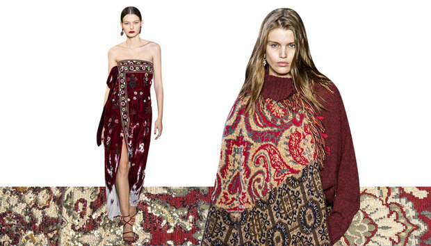 А красотой ковров так и вовсе восхищаются. Viktor & Rolf, например, как-то сшили целую коллекцию не для, а из красных ковровых дорожек.В новом сезоне — осень-зима 2019/2020 — коврами независимо друг от друга увлеклись два крупных модных дома: Oscar de la Renta в Нью-Йорке и Etro в Милане. Ковры вдохновили дизайнеров обеих марок на создание платьев, юбок, жакетов и аксессуаров. А чья версия больше по душе вам?