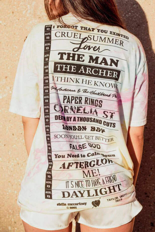 Через два дня, 23 августа, Тейлор Свифт презентует свой новый альбом Lover. По случаю релиза певица решила выпустить коллекцию мерча, для чего объединилась со Стеллой МакКартни. Дизайнер помогла разработать линию одежды, которая продолжила стилистику новой пластинки. В нее вошли бомберы, свитшоты, футболки, шляпы, сумки в технике тай-дай, украшенные строчками из песен и портретами кошки Тейлор Бенджамина Баттона.