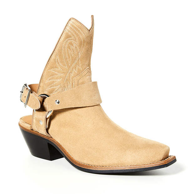 Главный вопрос - даже не как, а какие. Сапоги из черной глухой кожи лучше оставить до более прохладных времен, а вместо них обратить внимание на замшу или текстиль. Например, на деним - джинсовые казаки есть, например, у Off-White. Ну а традиционный и беспроигрышный вариант для летних сапожек - это, конечно, замша в разных оттенках коричневого. В настоящую жару, впрочем, даже такие лучше не надевать - для экспериментов подождите вечера.