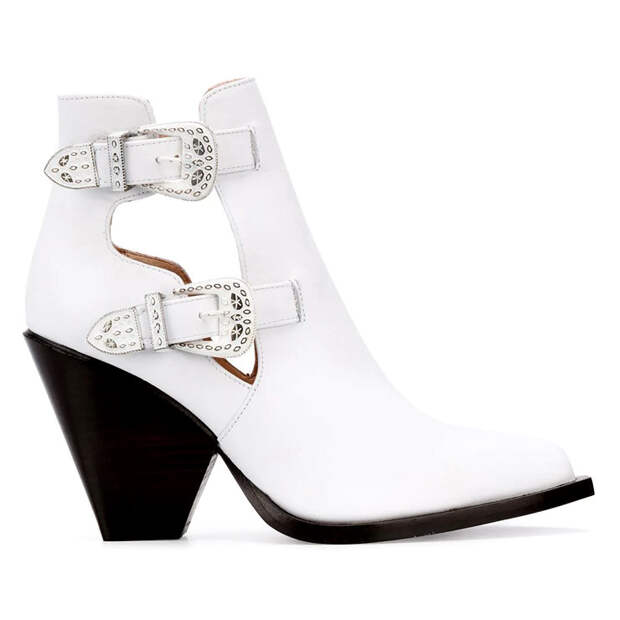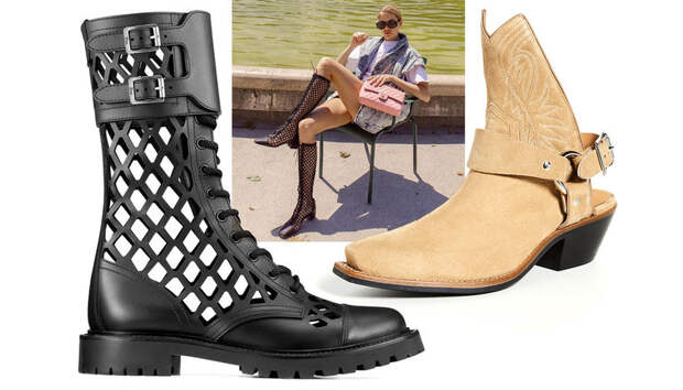 Еще один вариант - ботильоны с широкими ремешками, обхватывающими ногу. По форме они похожи на облегающие сапожки, но кожа дышит за счет бесконечных вырезов и прорезей. Один момент - помните главное обувное правило жаркого лета: все, что может быть стерто, будет стерто. Имеет смысл заранее запастись спасительными стиками. И будьте осторожны с перфорацией: сапоги с такой обработкой должны быть просторными. Потому что с узкими моделями, сильно облегающими ногу, узор от перфорации впечатается в ступни надолго - и это будет больно.