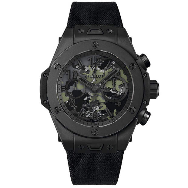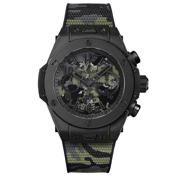 Для швейцарской мануфактуры он переосмыслил культовую модель Big Bang.Часы Big Bang Camo Yohji Yamamoto выпущены ограниченной серией из 200 экземпляров. Модель в корпусе из матовой черной керамики диаметром 45 мм имеет сапфировый циферблат, украшенный подписью Ямамото в положении «6 часов» и накладными деталями. Они образуют биоморфный узор – отсылка на камуфляжный мотив. Он также встречается на ремешке: каждая из составных форм вырезается по отдельности, собирается, а затем сливается воедино с помощью техники вулканизации. Второй ремешок, как несложно догадаться, выполнен из черной ткани.