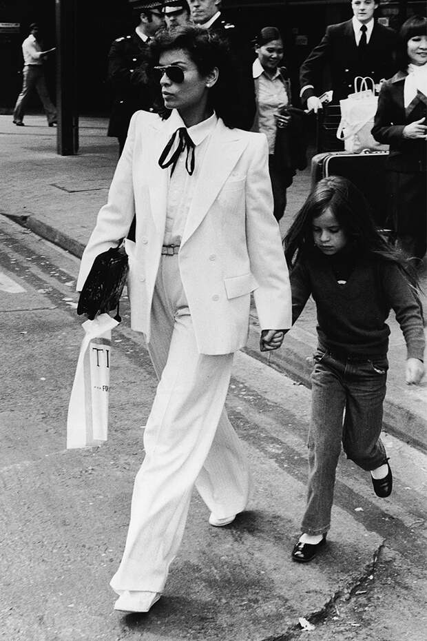 Образ it-girl Бьянки Джаггер в белоснежном смокинге стал каноническим. Он навсегда останется в истории (и в наших сердцах), минуя тенденции. Классической белый power suit — это как маленькое черное платье: идет всем и всегда выручает, когда нужно быть на высоте. В этом сезоне, когда 70-е правят бал, он особенно актуален. К слову, Джаггер носила смокинг на протяжении всей своей жизни, модернизируя образ с помощью ярких аксессуаров.