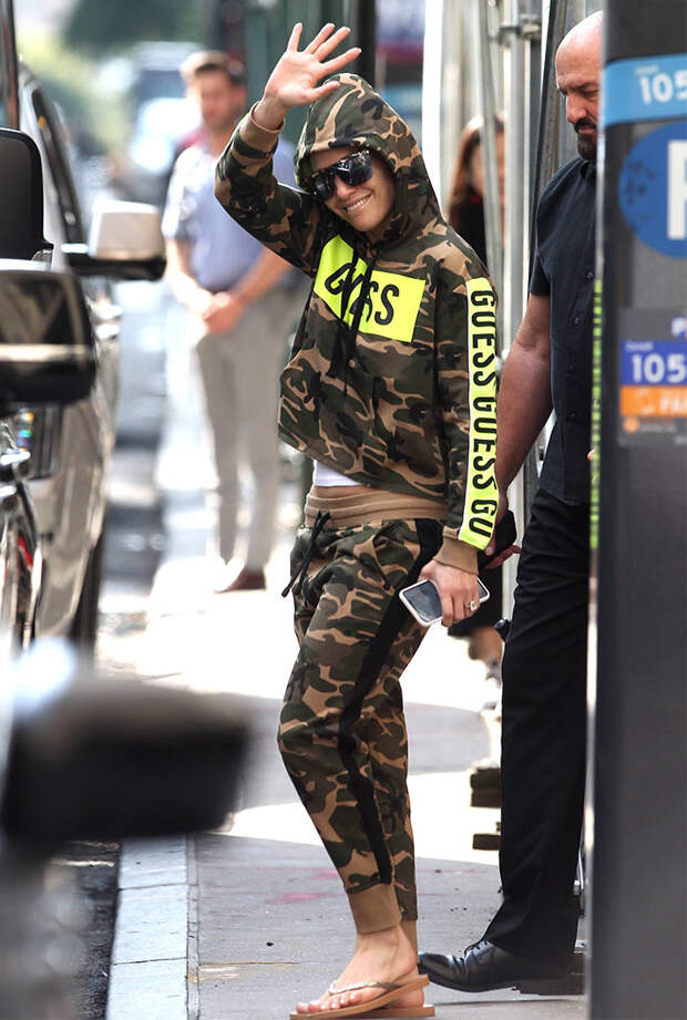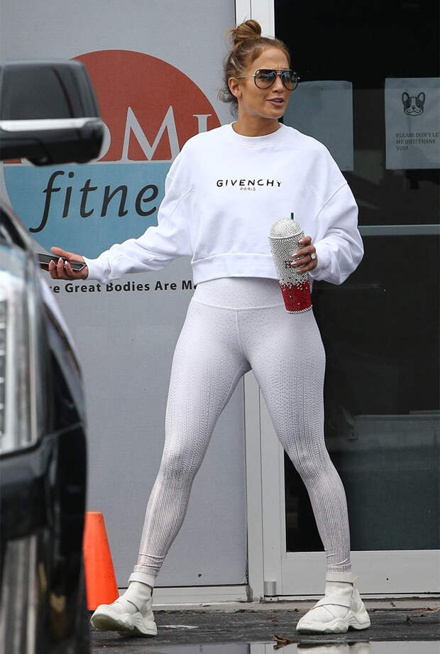 Тут и броские леопардовые лосины (которые так эффектно могут смотреться только на Джей Ло), и "армейский" костюм, и уютные трикотажные свитшоты и штаны, и сексуальные бра. Певица восхищает не только стилем, но и фигурой - в свои 50 Дженнифер Лопес может похвастаться идеальной физической формой. Совет тем, кто боится набрать лишние килограммы во время карантина: надевайте открытые топы и обтягивающие легинсы, заряжайтесь энергией во время домашних тренировок и смотрите фото от Дженнифер Лопес для мотивации - в нашей подборке.