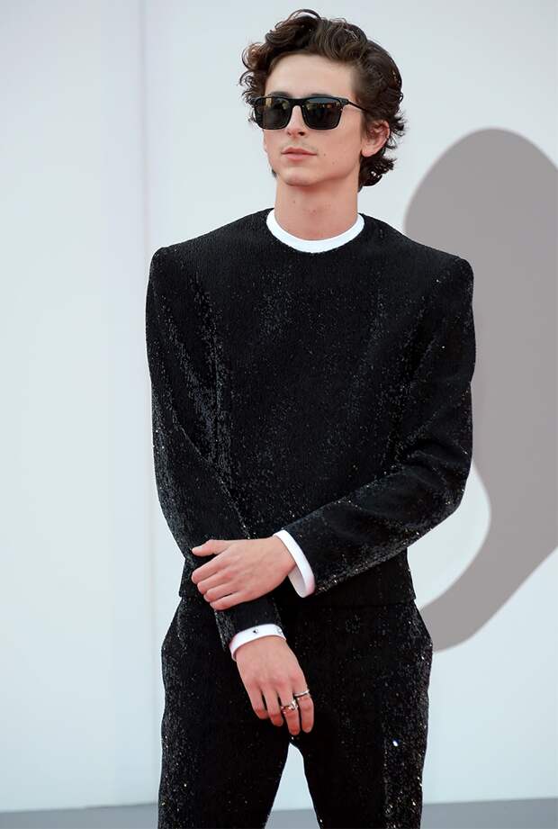 Ее коллега по фильму Тимоти пришел на пресс-конференцию фильма в покрытом кристаллами черном костюме от французского дизайнера Haider Ackermann, дополнив свой блестящий во всех смыслах образ винтажными украшениями от Cartier и черными очками.