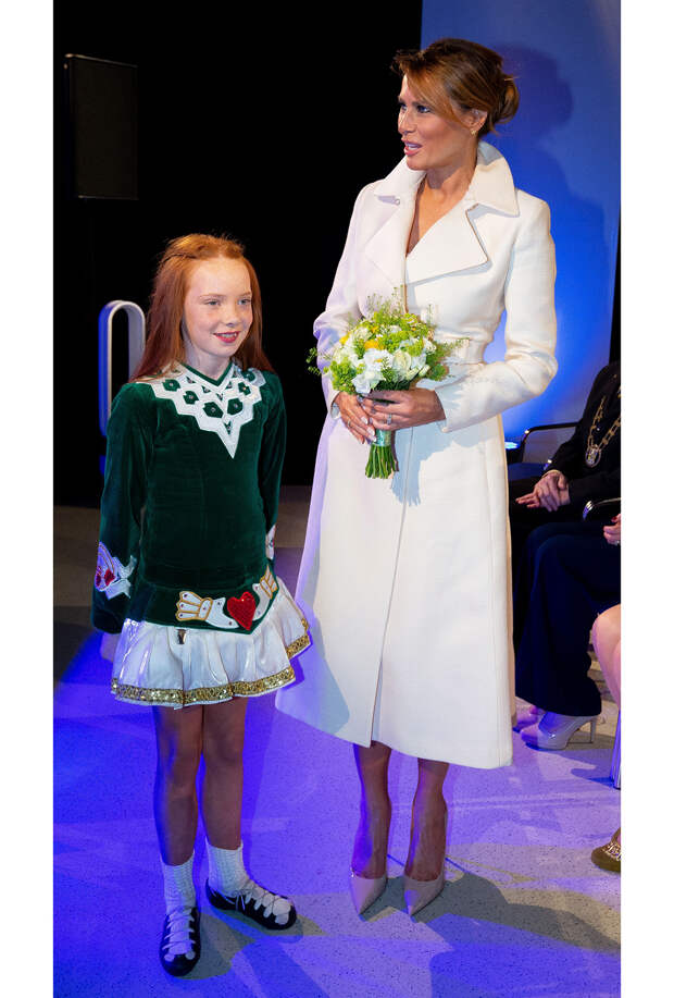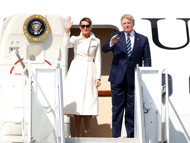Посетив торжественные мероприятия в честь 75-й годовщины высадки союзников в Нормандии, Дональд и Мелания Трамп завершили свое путешествие по Великобритании и прилетели в Ирландию. В международном аэропорту «Шаннон» первая леди появилась в эффектном молочно-белом пальто от бренда Мэри-Кейт и Эшли Олсен — The Row.