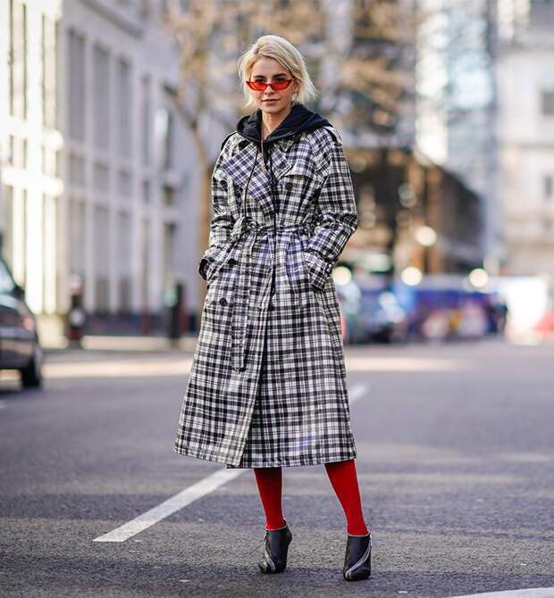 Так как разноцветные колготки в наше время до сих пор смотрятся необычно и привлекают к себе внимание, то их можно сделать центральными в образе. Однотонные вещи пусть будут однотонными, возможно, даже строгими. Например, с черно-белыми колготками отлично будут смотреться белое платье-рубашка и черная парка.