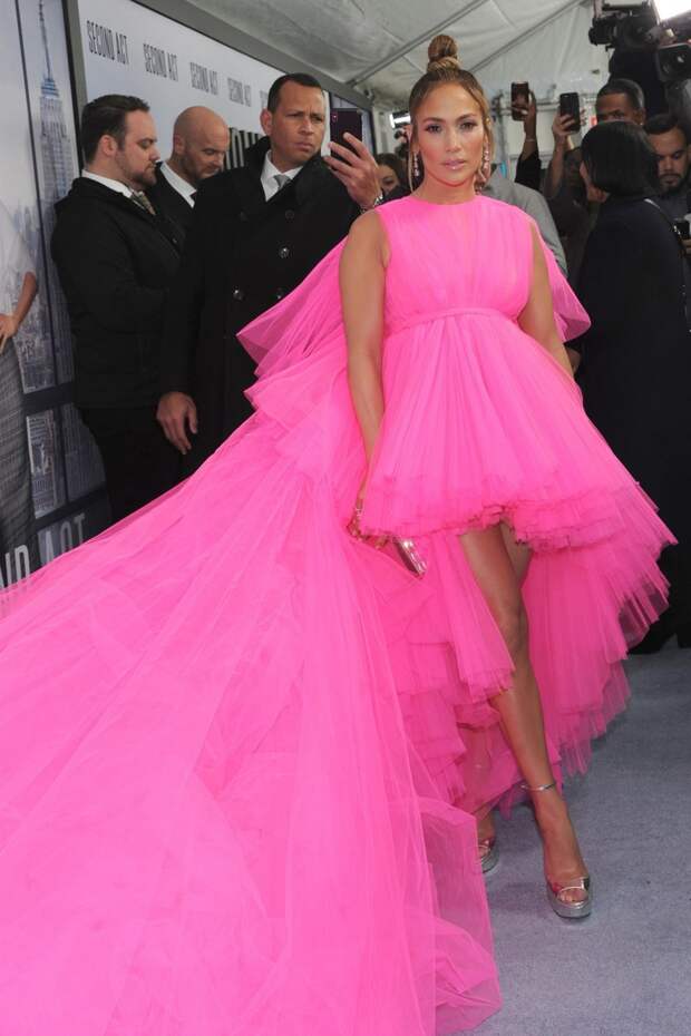 Если кому и не хватает часов в сутках, то это точно Дженнифер Лопес: в последнее время дива меняет по 5-6 образов за день и ничуть не устает от модных экспериментов. Свой вчерашний фэшн-марафон из разноплановых аутфитов звезда продолжила плеядой новых выходов. Начнем с самого эффектного из них: на нью-йоркской премьере романтической комедии «Начни сначала» (Second Act) Джей Ло появилась в эффектном платье Baby Doll от Giambattista Valli в насыщенном оттенке фуксии и золотых босоножках Jimmy Choo на платформе.