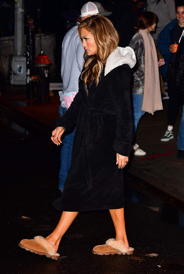 На самом деле, звездные жители расслабленного Лос-Анджелеса уже давно "случайно" выходят из дома в тапочках: Джастин Бибер в Louis Vuitton, Дженнифер Лопес в Ugg, Эль Феннинг в Miu Miu.