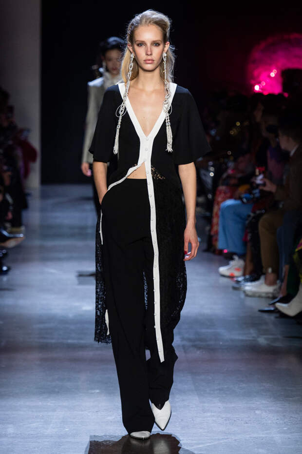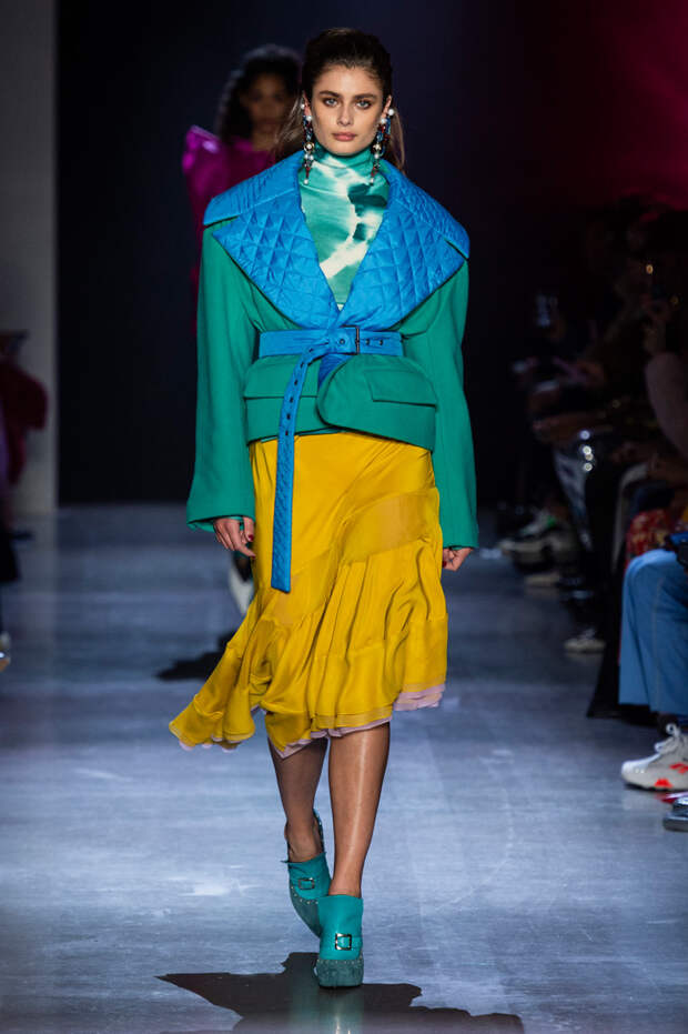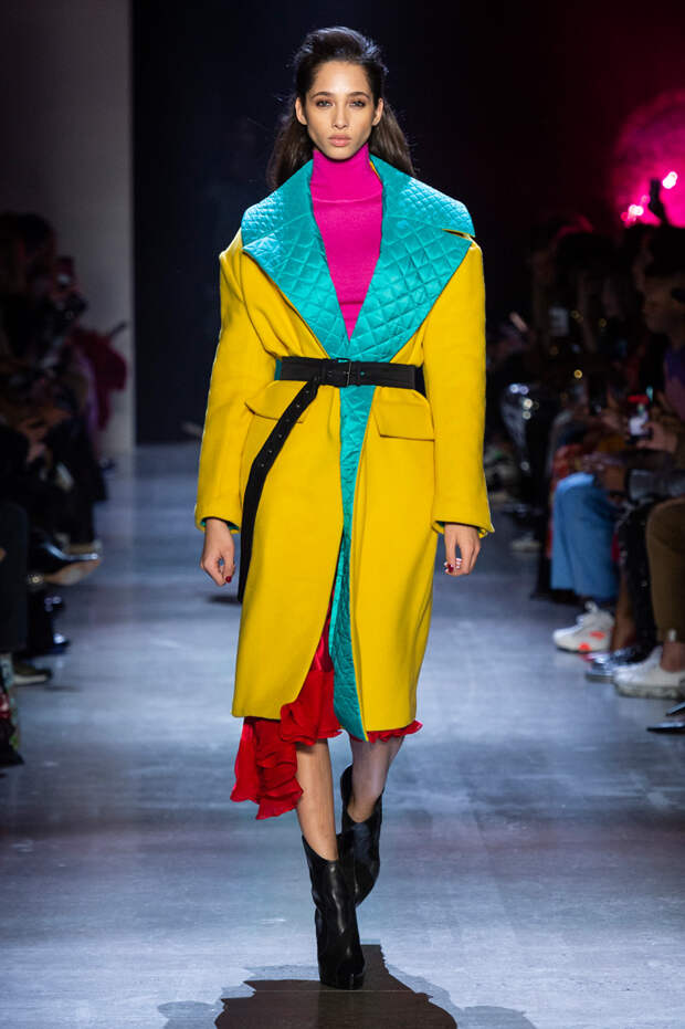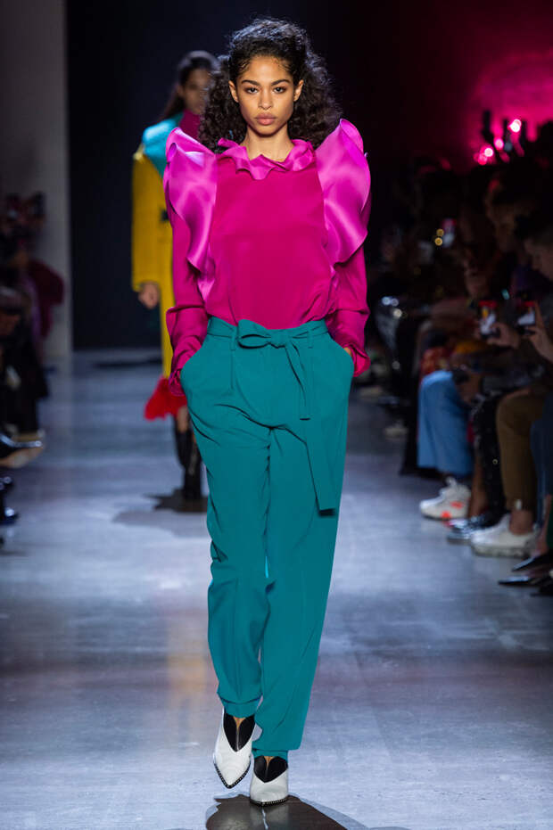 Такого эффектного начала, как у Prabal Gurung, не у было ни у одного другого шоу в Нью-Йорке. И дело даже не столько в звездном и максимально разнообразном кастинге. С первого же выхода — настоящий взрыв цвета: фуксия! Красный! Бирюзовый! Желтый! Обычно такие краски, чистые и совершенно бескомпромиссные, ассоциируются со спортивной одеждой, но Гурунг использовал их в совершенно других целях — для пальто с огромными лацканами, брюк, костюмов и платьев.