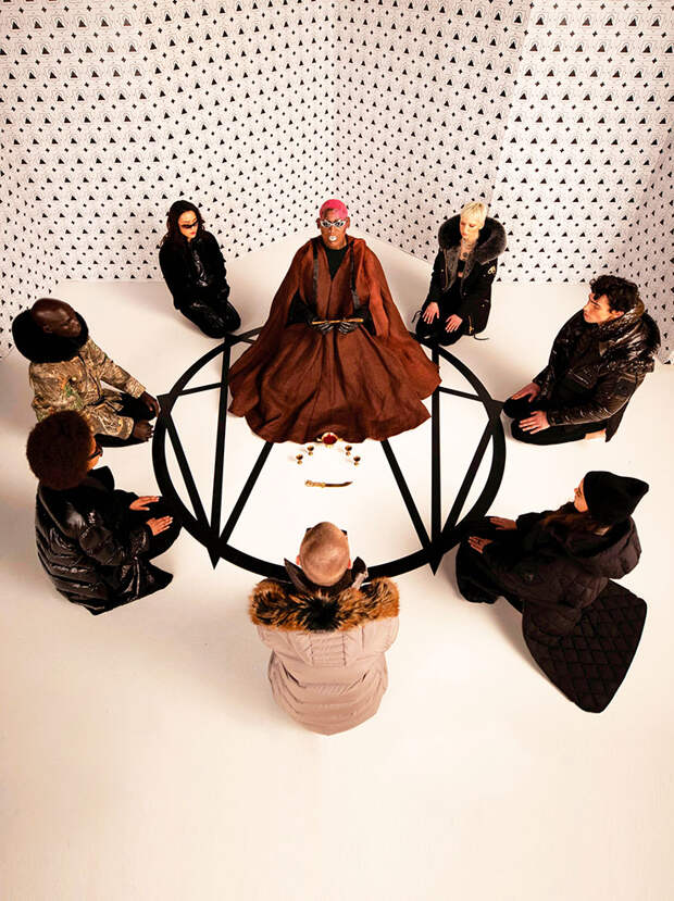 Впрочем, это не главная интрига: референсом для кампейна стал скандальный фильм 1973 года «Святая гора» мексиканского режиссера Алехандро Ходоровски. История не новая: если в Каннах картину называют кощунственной, спустя годы на нее обязательно будут ссылаться интеллектуалы. В случае с брендом – это студия Kid. Studio из Торонто, специализирующаяся на модных съемках и в пуле которой числятся такие таланты, как стилист Бобби Боуэн и парикмахер-визажист Мила Виктория. Sacred Glacier – их третья совместная работа с Moose Knuckles.