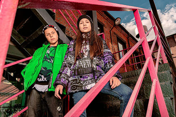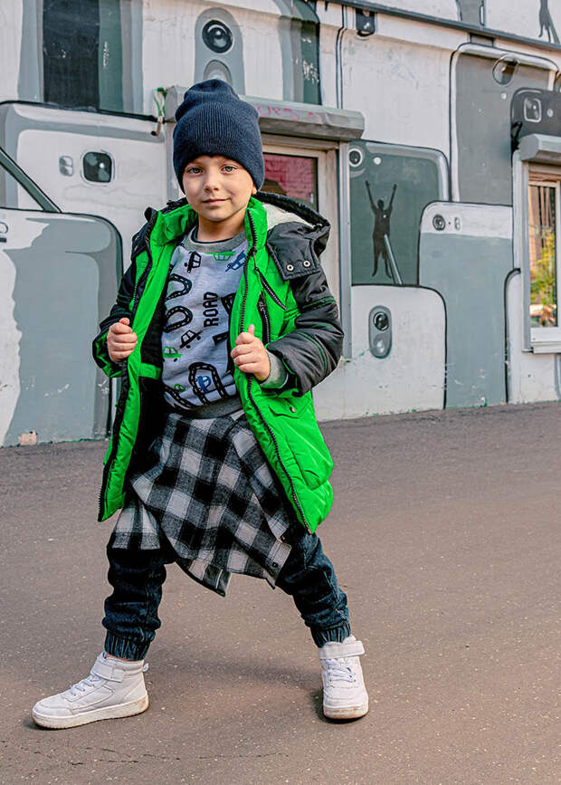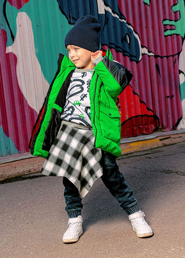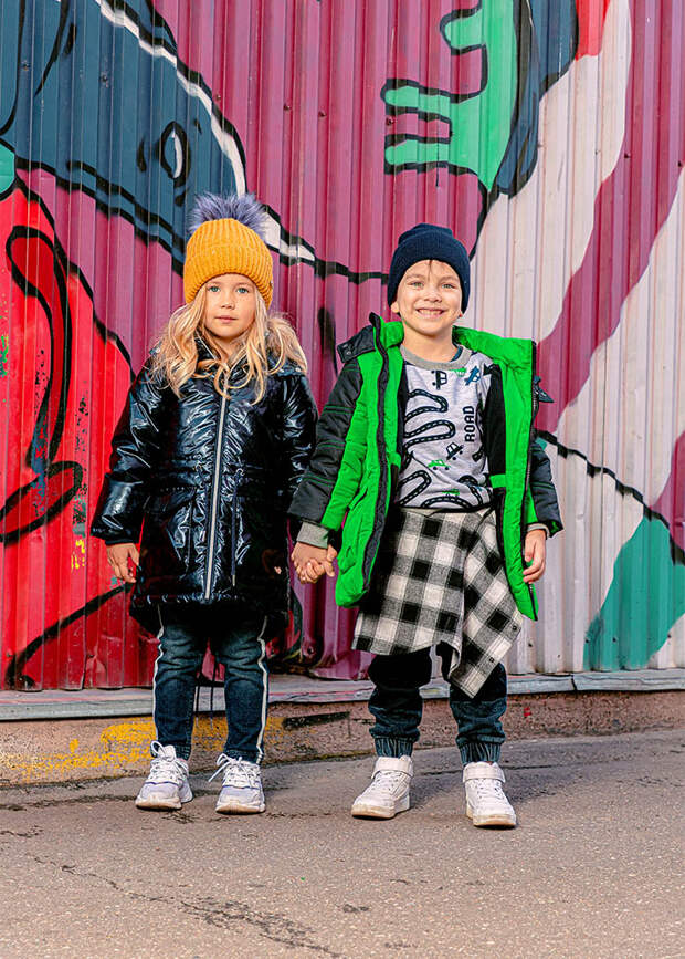 Ярким акцентом коллекции стала тема граффити, построенная и для мальчиков, и для девочек на насыщенной графике. При этом в качестве компаньонов ярким узорам и цветам используются однотонные материалы – ребенок может создавать свой стиль, легко сочетая между собой вещи и дополняя их выразительными аксессуарами.