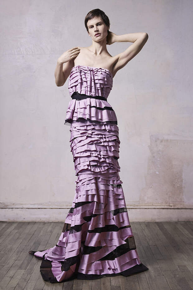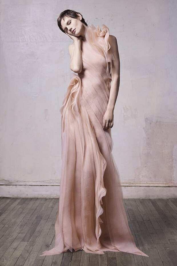Джейсон Ву временно ушел с подиумов, и эти жертвы оказались совершенно оправданными: новая коллекция дизайнера получилась по-особенному трепетной, сказочной. 18 невесомых платьев, созданных модельером, неспроста напоминают цветы: главным источником вдохновения для Ву послужил его же собственный аромат Velvet Rouge, в основе которого - роза, пион и жасмин.