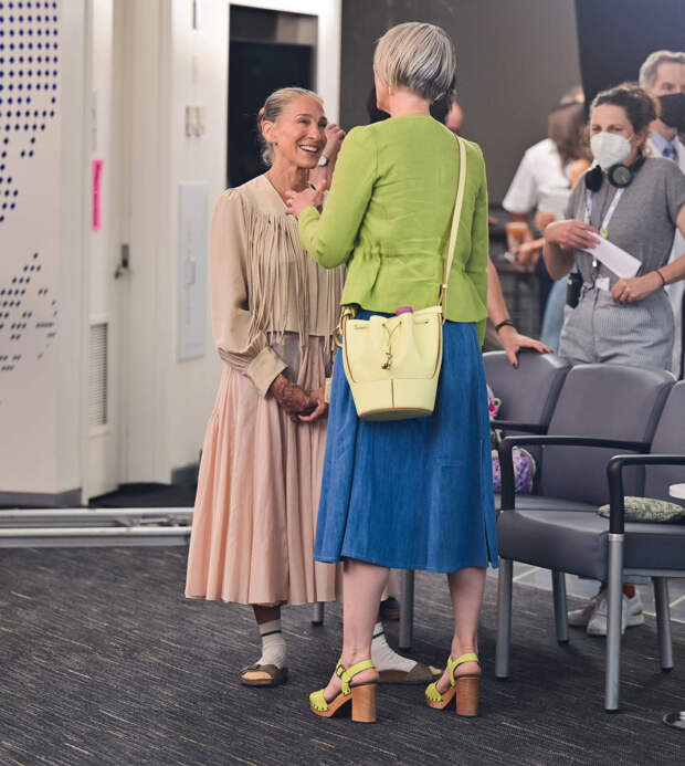 Съемки сериала And Just Like That — продолжения легендарного «Секса в большом городе» — идут полным ходом. Практически каждый день появляются новые фото со съемочной площадки — а мы внимательно следим за тем, кто их старых персонажей вернулся в сериал, сколько появилось новых героев и какие образы для актеров собрали художники по костюмам (к сожалению, без участия легендарного стилиста Патриции Филд — она от съемок отказалась). На этот раз появились новые снимки Сары Джессики Паркер и Синтии Никсон — исполнительниц ролей всеми любимых Кэрри и Миранды.