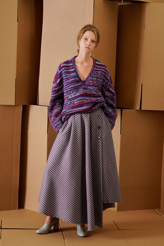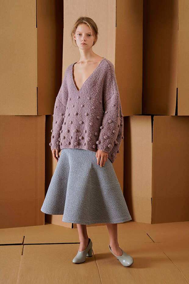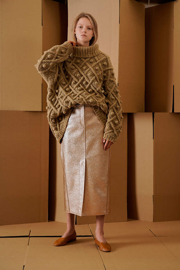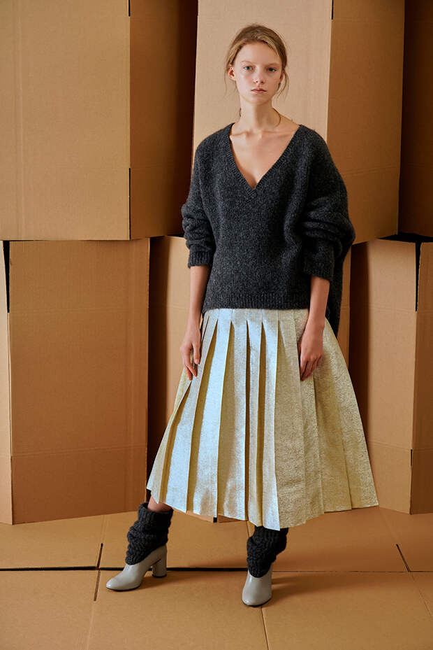 Вика Газинская - одна из немногих отечественных дизайнеров, узнаваемых и любимых в Европе. Новая осенне-зимняя коллекция еще один аргумент в ее пользу. Здесь и сложные продуманные силуэты, игра с объемами и текстурами, но при этом все максимально "носибельно". В плиссированных юбках в паре с объемными свитерами можно смело отправиться как в офис, так и отправиться в Париж за званием звезды стритстайла.
