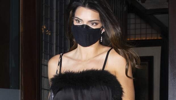 Для похода в ресторан Кендалл выбрала шелковую мини-комбинацию с меховой отделкой. Свой элегатный total black образ она дополнила лакированной сумочкой-багетом, прозрачными черными колготками и, конечно, защитной маской (в Нью-Йорке без нее никуда). Длинные и стройные ноги самой высокооплачиваемой модели украшали туфли с тонкими ремешками и открытым носом. Берем образ на заметку для осенних выходов!