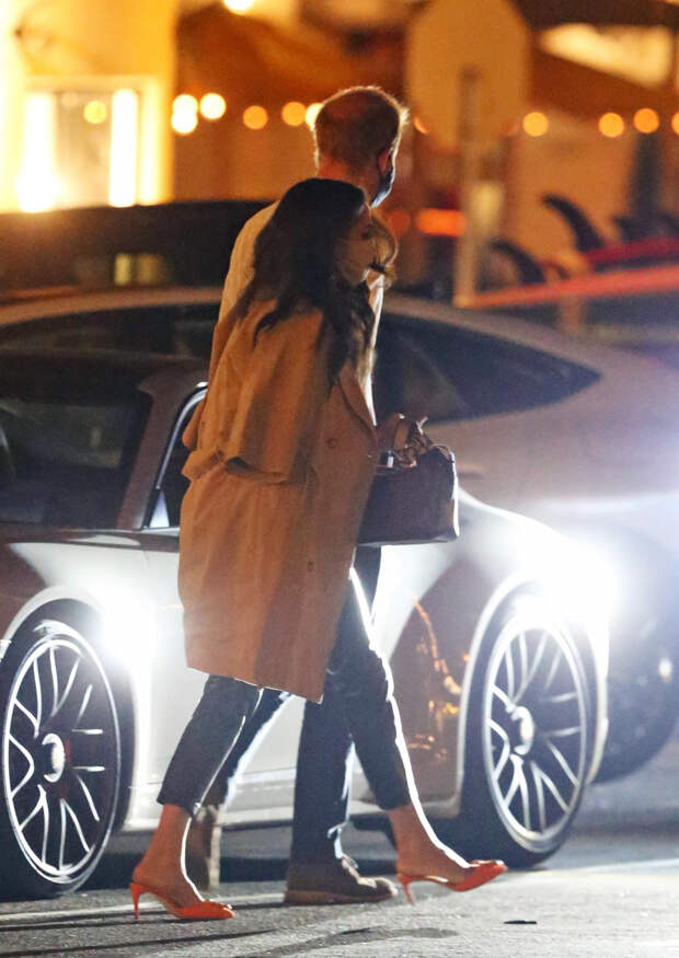 Это первое появление бывшей королевской четы в городе с тех пор, как они переехали в большой особняк в окрестностях Санта-Барбары. Меган и Гарри приехали к ресторану на автомобиле с шофером и охраной.Меган для похода в ресторан выбрала укороченные кожаные брюки и бежевый свитер, который дополнила тренчем и оранжевыми мюлями. Она и ее супруг появились у заведения, держась за руки. Ранее они сводили свои выезды из дома к минимуму из-за эпидемиологических ограничений в Калифорнии: ситуация с коронавирусом в США все еще остается сложной. Однако герцог и герцогиня соблюдали все требуемые правила безопасности, включая ношение масок.