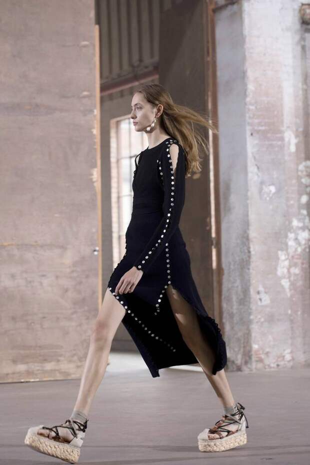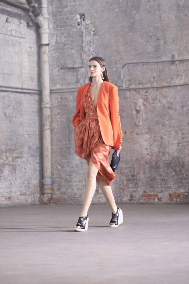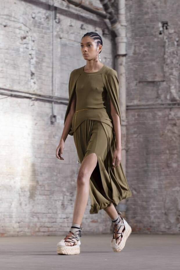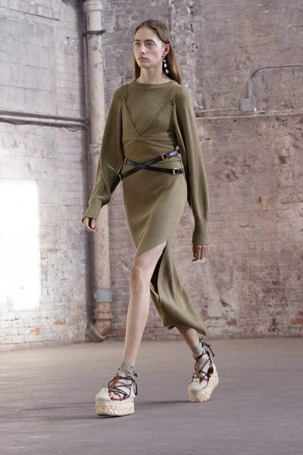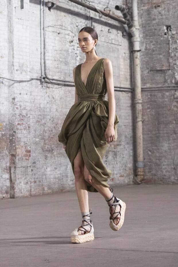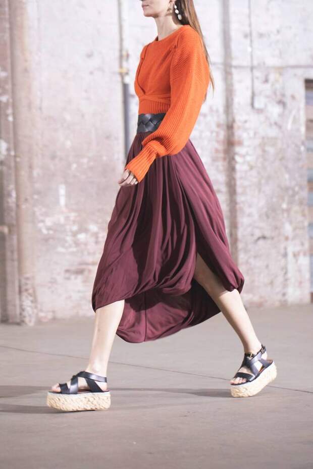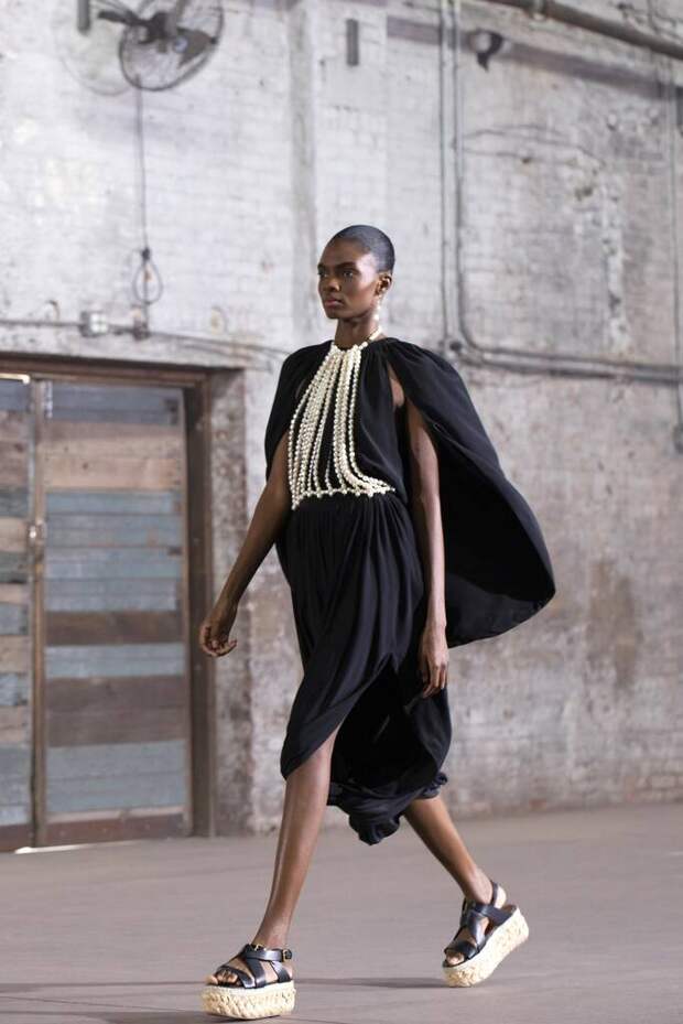 В отличие от прошлого сезона, когда Альтузарра обратился к теме наследия, корней и стилю 50-х (вероятно, сказалось отцовство — у него только-только родилась дочь), в этот раз он решил полностью быть в сегодняшнем дне. И несмотря на то, что большая часть силуэтов была так или иначе вдохновлена стилем 90-х, получившиеся образы все же выглядели очень свежо и современно. Возможно, дело в чистых цветах (цветовая гамма варьировалась от горчичного до темно-синего и кораллового) или лаконичных силуэтах. Так или иначе, в коллекции хватало вещей, которые хочется носить здесь и сейчас. Это и безупречно скроенные брючные костюмы, и платья со сложными драпировками, и комплекты из кожи (кажется, этот осенний тренд с нами надолго), и вещи из тонкого трикотажа. Все их объединяла безупречность линий и бескомпромиссная актуальность кроя. Отдельного внимания заслуживают аксессуары: украшения из жемчуга в несколько рядов, которые как бы "врастают" в одежду и становятся ее частью, а также эспадрильи на толстой подошве. Уверены, что уже через полгода они разлетятся по лентам соцсетей и отчетам стритстайл-фотографов.