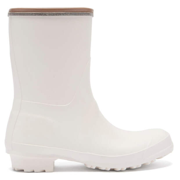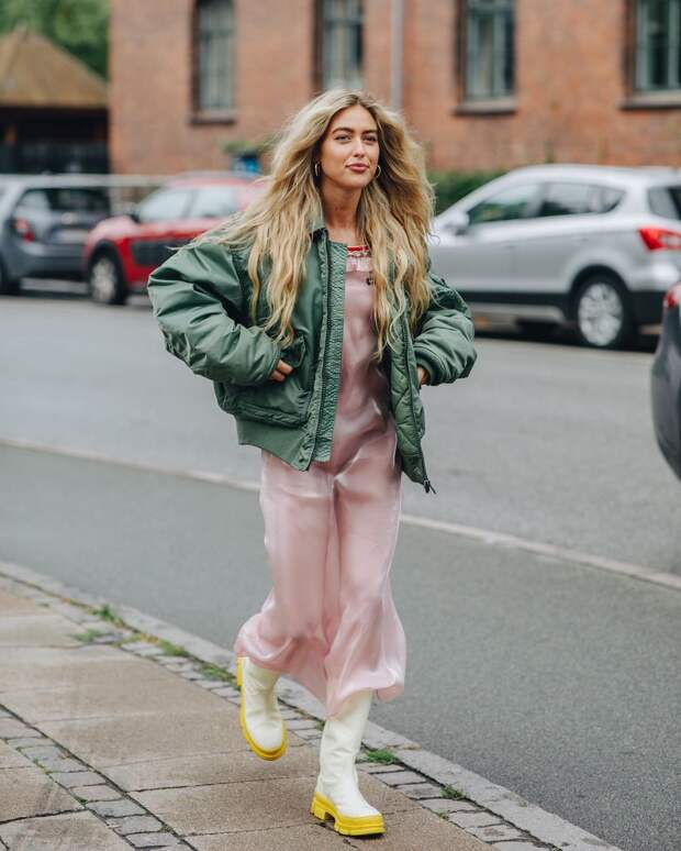 Подобные контрастные сочетания были замечены на показах Boss и Celine. Последний и вовсе объединил все маст-хэвы сезона: ветровку, платье со сборками, бейсболку и резиновые сапоги. Кстати, без них в этом месяце, судя по погоде, не обойтись. Смело сочетайте базовые резиновые сапоги с дерзкими мини-юбками, джинсовыми шортами и платьями-халатами. Эта обувь может легко выполнять функцию грубых ботинок, надевать которые еще рано.