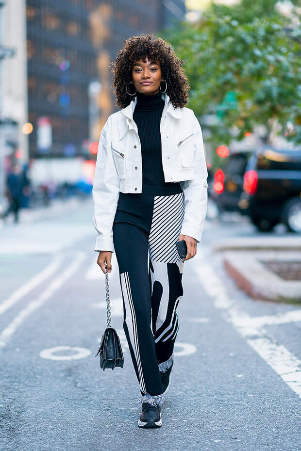 Конечно, не без элементов, которые подчеркнут их отличную форму — ведь на кастингах надо выглядеть во всеоружии.Этой осенью, например, многие из моделей предпочитают обычным скинни-джинсам остромодные кожаные брюки. Они могут быть сделаны из лакированного материала или же матового. Кожаные брюки можно сочетать с жакетом или пальто с анималистичным принтом (еще один хит этого сезона), а также оверсайз-ветровками. Некоторые девушки остаются верны классике, а потому выбирают самые простые голубые джинсы прямого кроя — это беспроигрышный вариант для любого случая и любимый предмет гардероба у многих моделей. К ним подбираются яркие кроп-куртки или укороченные топы — наподобие тех, которые представлены в коллаборации Moschino x H&M. Еще один беспроигрышный вариант — одеться в стиле школьницы-бунтарки: в короткую клетчатую юбку, косуху, футболку с изображением рок-группы и грубые ботинки. Такой образ пусть и является классикой, все равно выделяется из всех остальных и гармонично смотрится именно осенью.