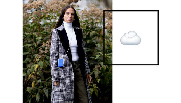 Пальто CAROLINA HERRERA, 231 809 руб.; водолазка ANNA QUAN, 12 240 руб.; джинсы JACQUEMUS, 35 668 руб.; ботинки RAG & BONE, 24 479 руб.; сумка BALENCIAGA, 52 785 руб.
