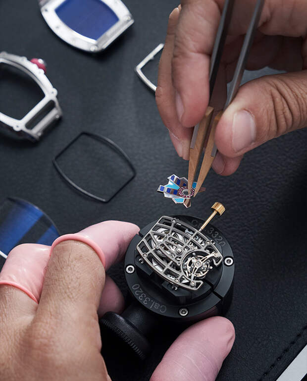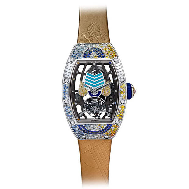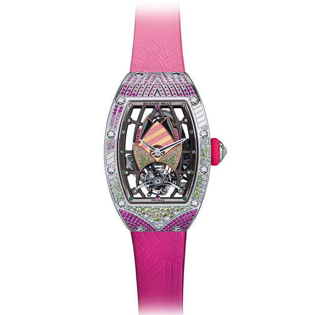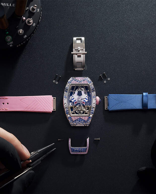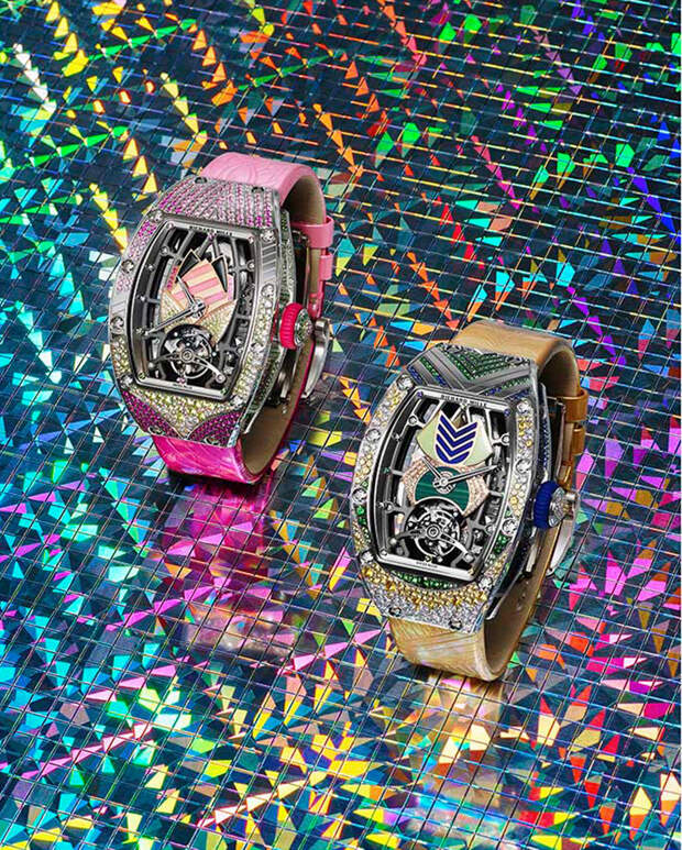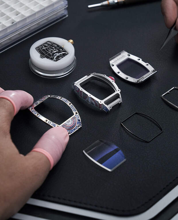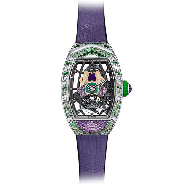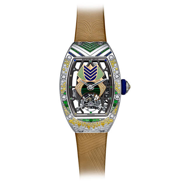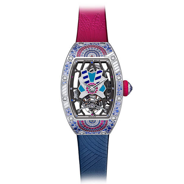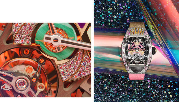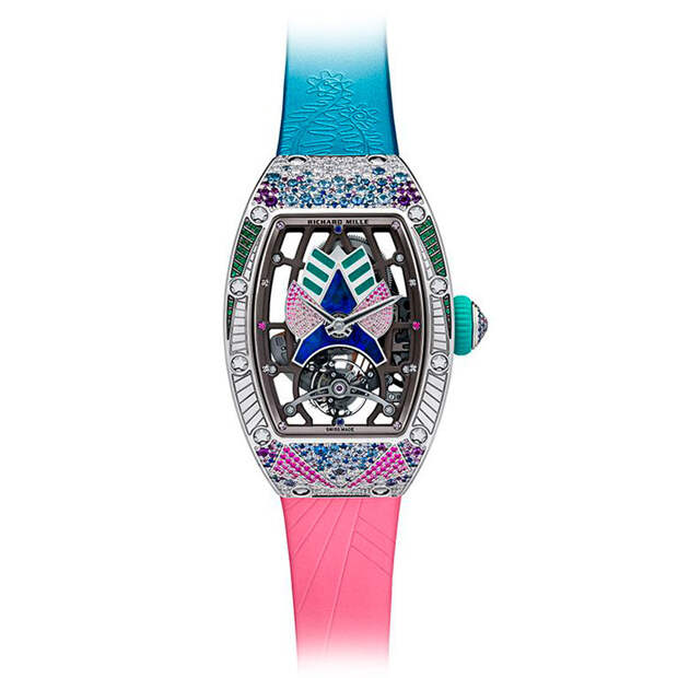 "Я всегда хотела работать с цветом, и потому коллекция Talisman стала волнующим вызовом: нам предстояло превратить ее черно-белую гамму в нечто совершенно противоположное, — говорит Сесиль Генá, креативный директор Richard Mille. — «Хотя канонический дизайн часов где-то сдерживал нас, мы провели много времени, работая над инкрустацией цветными камнями и играя с из орнаментом».