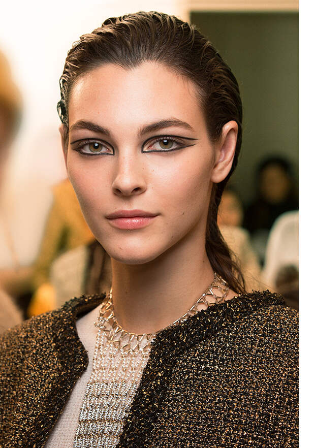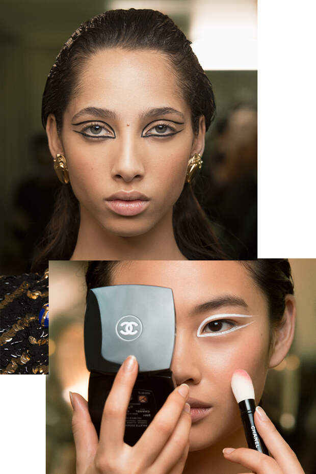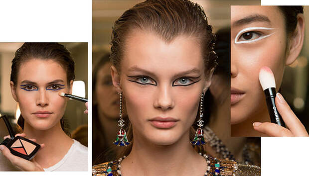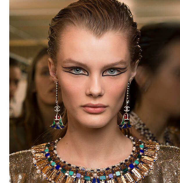 Главной темой показа Chanel Metiers d'Art, прошедшего 4 декабря в Нью-Йорке, стали мифы Древнего Египта. Макияж у всех моделей был соответствующий: в восточном стиле, с обилием золота и синевы. Также в основу мейкапа легли графичные черные и белые линии, которыми визажист Лючия Пика рисовала фантазийные узоры вокруг глаз.