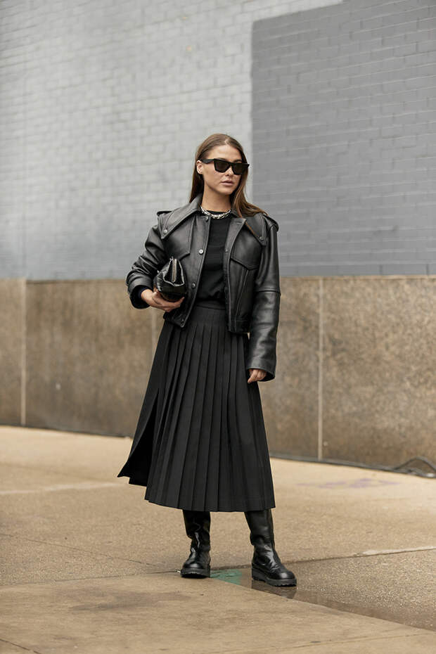 Неделя моды в Нью-Йорке близится к логическому завершению. Позади главне показы: Prabal Gurung, Rodarte, Coach, Gabriela Hearst, Oscar de la Renta, Carolina Herrera, Longchamp, Monse, Tom Ford. Гости шоу тем временем диктуют стритстайл-тренды. Свежие кадры фотохроник доказывают, что в следующем сезоне придется подружиться с вещами из кожи (будь то комбинезоны, плащи, брюк или рубашки), брюками-трубами и мюли на каблуке.