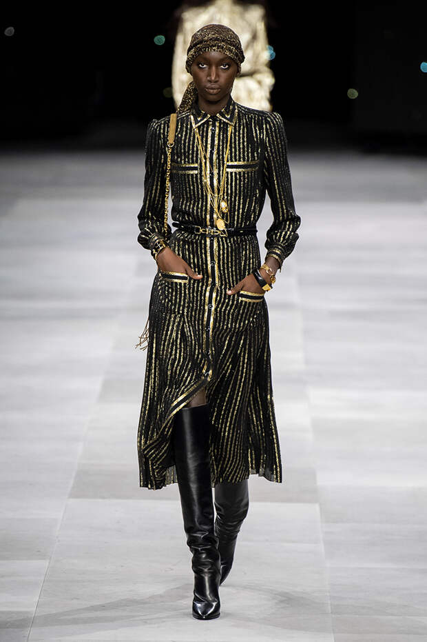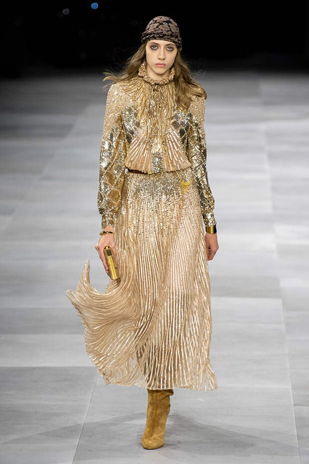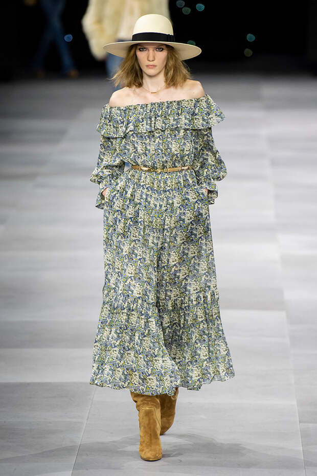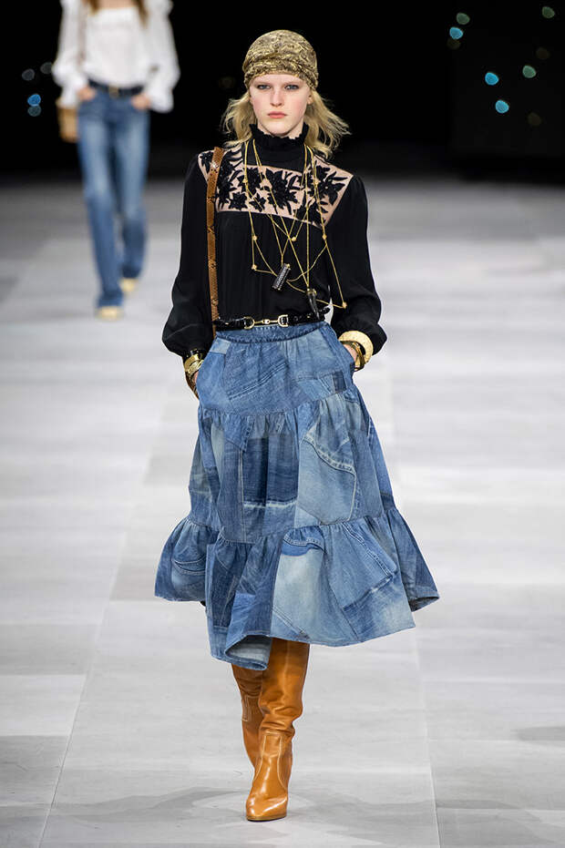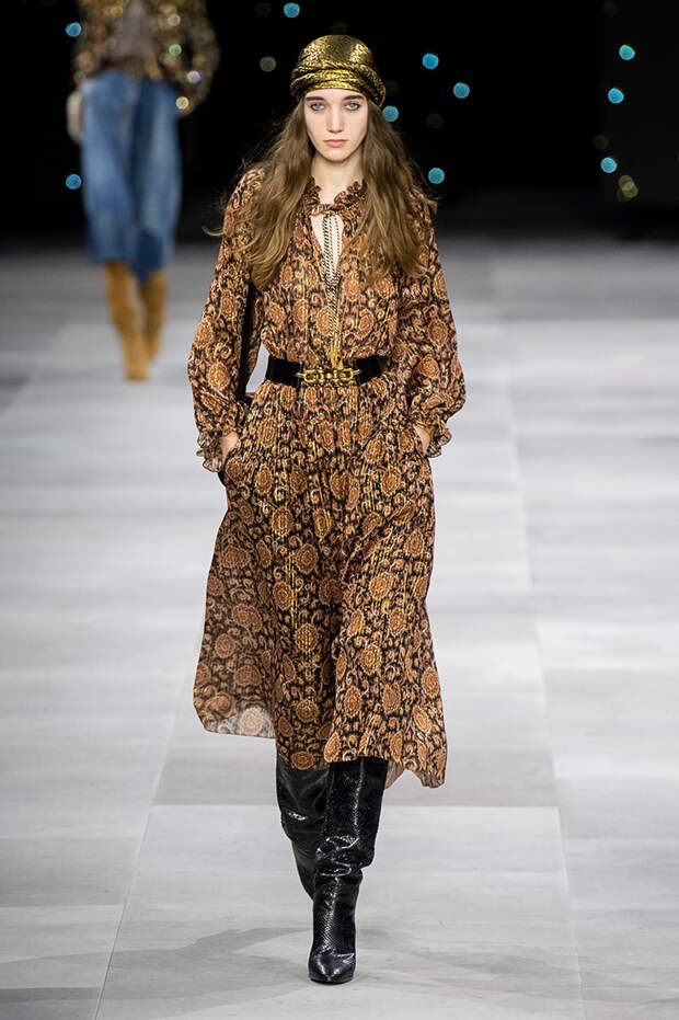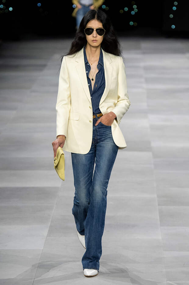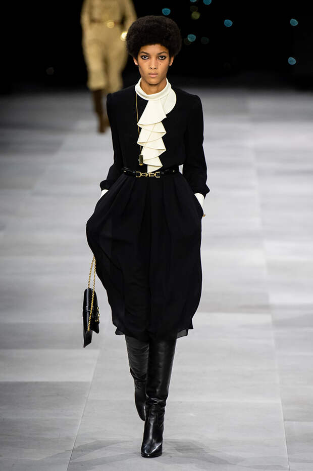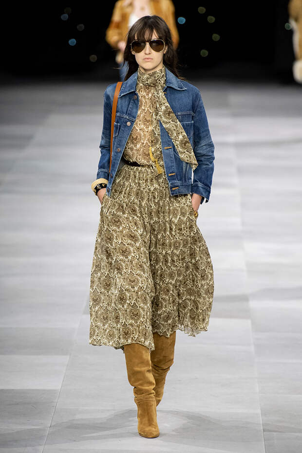 Первая коллекция дизайнера для нового дома оправдала худшие ожидания: Слиман остался Слиманом и попытался, кажется, переделать стиль марки полностью под себя. Но, похоже, в ней он как раз прошался с дорогим сердцу рок-н-роллом: уже осенью он сменил юных тусовщиц на буржуазных дам. И вместо лихих платьев и вечериночного шика сосредоточился на шике повседневности, обыденности. На том, чтобы сделать стандартный "взрослый" гардероб cool again. Главным сочетанием всей коллекции неожиданно стала не вечная слимановская пара "рваные колготки + черное мини", а квадратный жакет с блузой и юбкой миди — то есть набор, который вряд ли кому-то в 2019 году до него приходило в голову назвать крутым. Ну а теперь — приходит.