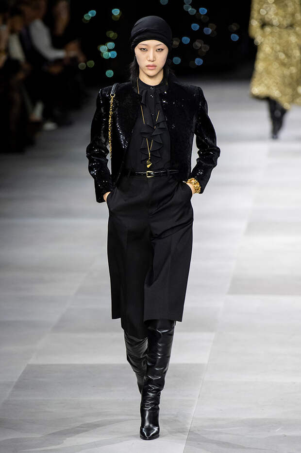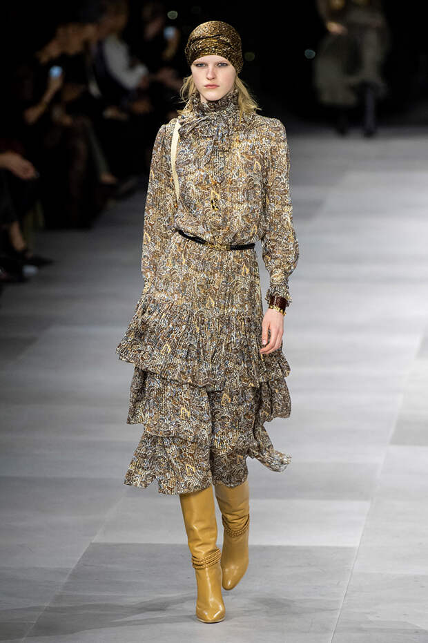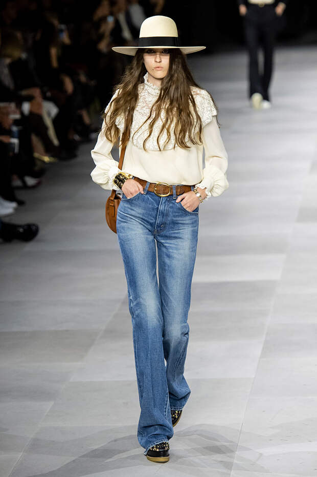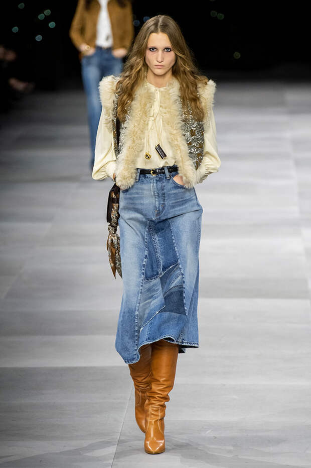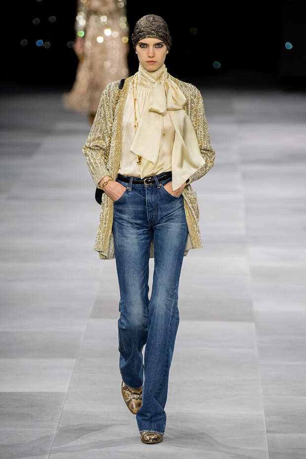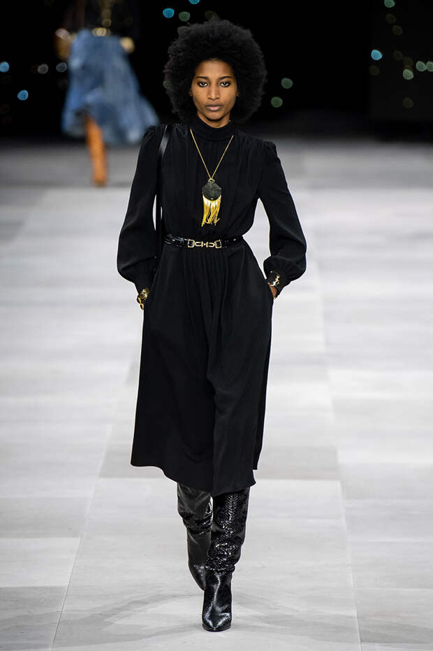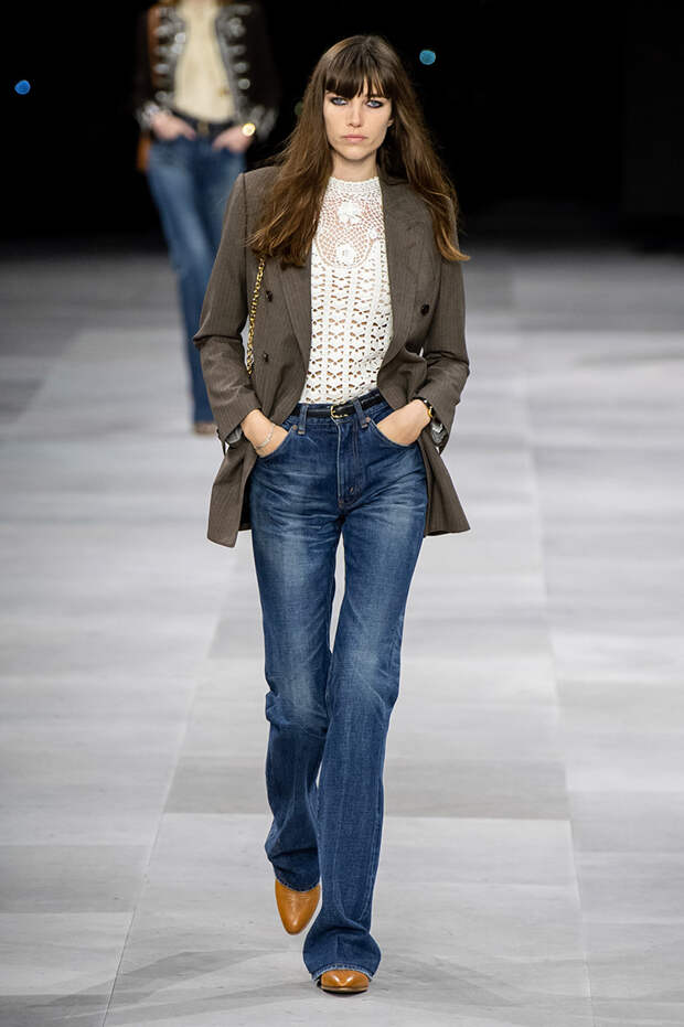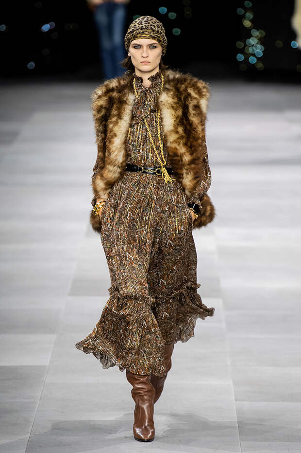 Первая коллекция дизайнера для нового дома оправдала худшие ожидания: Слиман остался Слиманом и попытался, кажется, переделать стиль марки полностью под себя. Но, похоже, в ней он как раз прошался с дорогим сердцу рок-н-роллом: уже осенью он сменил юных тусовщиц на буржуазных дам. И вместо лихих платьев и вечериночного шика сосредоточился на шике повседневности, обыденности. На том, чтобы сделать стандартный "взрослый" гардероб cool again. Главным сочетанием всей коллекции неожиданно стала не вечная слимановская пара "рваные колготки + черное мини", а квадратный жакет с блузой и юбкой миди — то есть набор, который вряд ли кому-то в 2019 году до него приходило в голову назвать крутым. Ну а теперь — приходит.