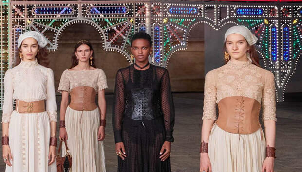 Модели дефилировали на ярком фоне световых инсталляций в сопровождении этнических танцев от ансамбля под звуки живого оркестра.Действо происходило перед собором Duomo, щедевром архитектуры итальянского барокко. Юбки с бахромой, платки, монохромные платья, кожаные корсеты, пальто с яркими принтами, обилие цветочной вышивки - все это великолепие органично дополнялось общей атмосферой настоящего модного таинства. Всего в шоу Dior приняло участие более 1000 человек, включая артистов, музыкантов, режиссеров, электриков, не говоря уже о моделях, фотографах, парикмахерах, визажистах и продюсерах.