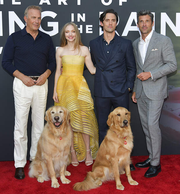 Выходом на красную дорожку в эффектном платье или дизайнером костюме-двойке давно уже никого не удивишь. А потому актеры фильма "Невероятный мир глазами Энцо" решили появиться на премьере в голливудском Театре Ель Капитан в компании двух очаровательных золотистых ретриверов, также сыгравших в картине.
