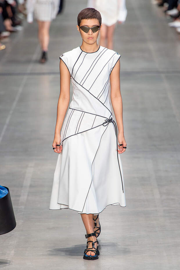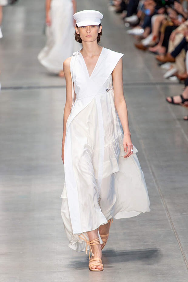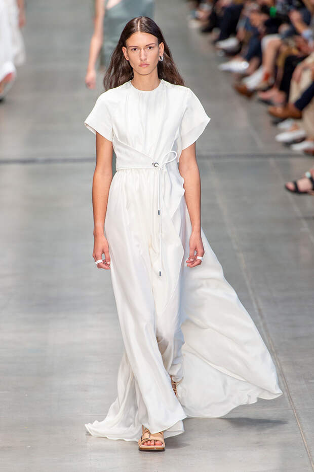 Осенние дожди, зарядившие в Москве — удовольствие сомнительное. Попасть под такой без зонта захочет только безумец. Летний дождь или даже весенний — совсем другое дело: оказаться под ним и бежать по городу в мокройной одежды по-своему даже приятно. Есть в этом какая-то особенная романтика. Именно такими в своем роде романтичными образами и открылся весенний показ Sportmax: модели вышли на подиум в платьях, которые казались мокрыми от дождя.