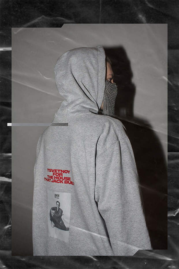 По такому случаю московский универмаг "Цветной" разработал специальный мерч совместно с киностудией Ларса фон Триера.На черных и серых унисекс-худи напечатаны постеры к фильму с Умой Турман и Мэттом Диллоном. На фронтальной стороне изображена первая жертва, а на спине — сам убийца. Расположение не случайно — так маньяк будто преследует человека, которого собирается убить. Дополнены же постеры надписью Tsvetnoy For The House That Jack Built.