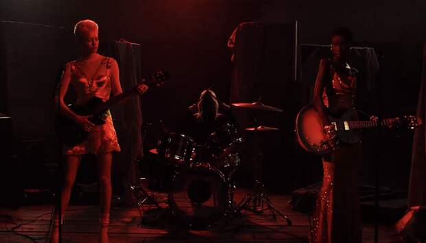 Девушки в качестве реквизита выбрали гитары, а Донателла продемонстрировала свои навыки на барабанной установке.