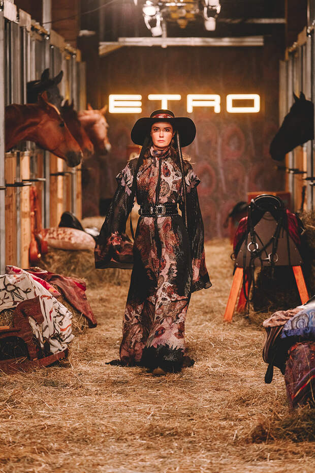 Так, показ Etro прошел в конюшнях крупнейшего конно-спортивного клуба ГБУ «СШ «Битца» Москомспорта, который был построен к Олимпиаде ’80. Вместе с клиентами коллекцию представили актрисы Агата Муцениеце и Дарья Повереннова. На шоу Alberta Ferretti на подиум в новинках марки вышли амбассадор бренда Наталья Османн и Янина Студилина. А вот приглашенными звездами у Ermanno Scervino стали Аглая Тарасова и Ксения Шипилова. Декорации показа BoscoFamily – это семейный ужин в Bosco Cafe, день рождения главы семейства. В числе гостей-моделей оказались Ксения Собчак и Рената Литвинова.