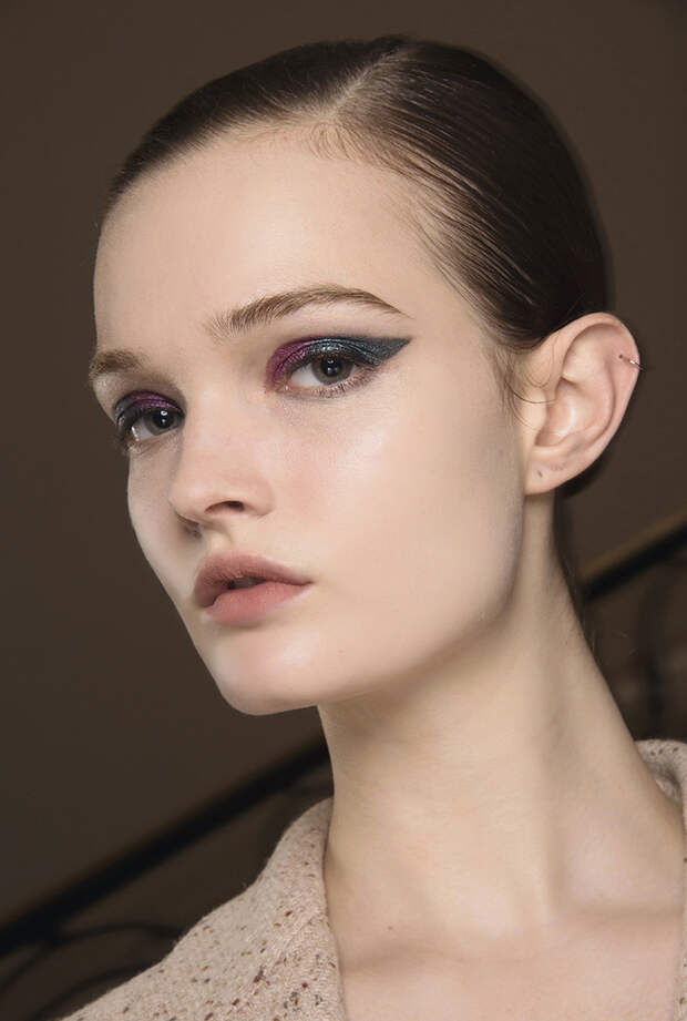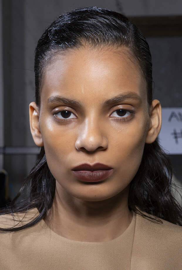Тренды 90-х уверенно возвращаются в нашу жизнь и коричневая помада снова актуальна, как 30 лет назад. Такой макияж абсолютно универсален и подходит как для офиса, так и для вечернего выхода. Выбирайте спокойные оттенки коричневого, как на показе Calcaterra, или насыщенные, как у моделей бренда Colangelo.