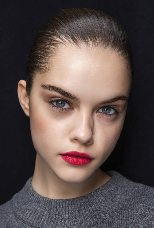 На осенне-зимних показах этого сезона мы увидели широкую палитру оттенков от красно-оранжевого у Oscar de la Renta до насыщенной фуксии у Brock Collection. А вот визажисты Givenchy отдали предпочтение классическому алому. Главное, выбирайте помаду, которая не будет растекаться и скатываться - такой макияж требует 100% стойкого покрытия.