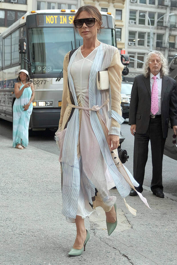 В этом году Виктория решила повторить знаменательную съемку с легендарным фотографом Юргеном Теллером - правда, теперь написав на пакетах собственное имя. Кроме того, к юбилею дизайнер выпустила несколько футболок с ироничными слоганами Fashion Stole My Smile и It’s A Dark But Happy Pace, а также впервые изменила локацию своих показов — с Нью-Йорка на Лондон.Виктория задала единый эстетический курс на неоспоримую женственность и поддерживает его до сих пор. Фасоны, безусловно, менялись: от типичных для того времени обтягивающих платьев-футляров до сегодняшних асимметричных моделей; от классических пальто с минимумом деталей до оверсайз-парок и дутых плащей. Однако героиня коллекций Виктории едва ли пережила значительные перемены — это все та же современная активная девушка, которой нужна стильная одежда вне времени. Каковой является и сама дизайнер: не секрет, что она любит собственную линейку и носит вещи из нее в повседневной жизни. Рассказываем, что именно сделало Викторию иконой стиля и какие модные приемы бывшей "перчинки" не устаревают до сих пор.
