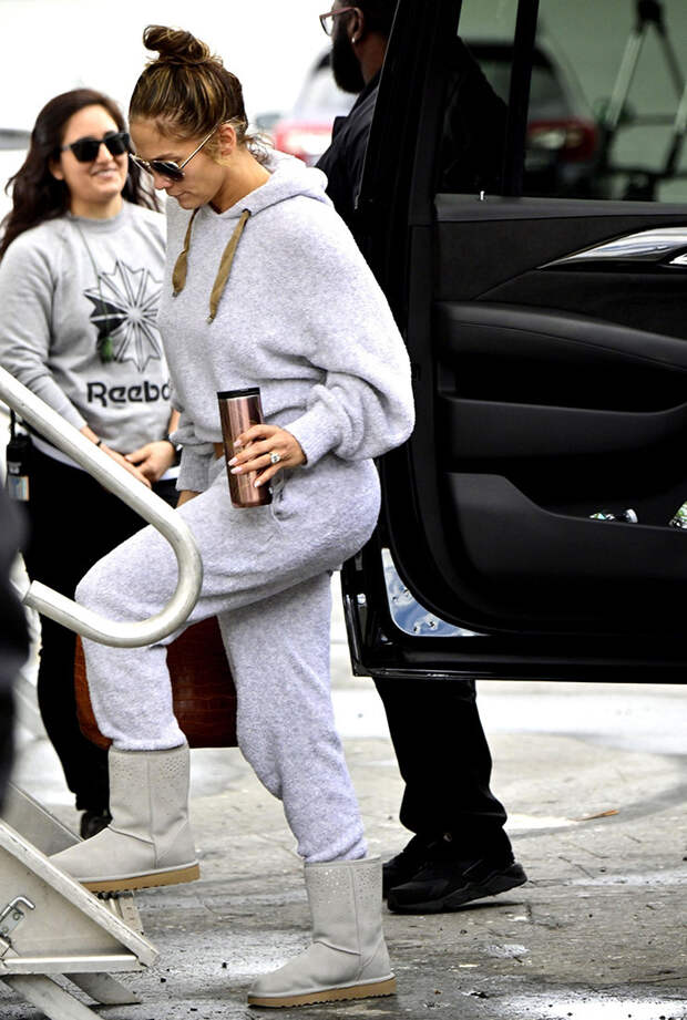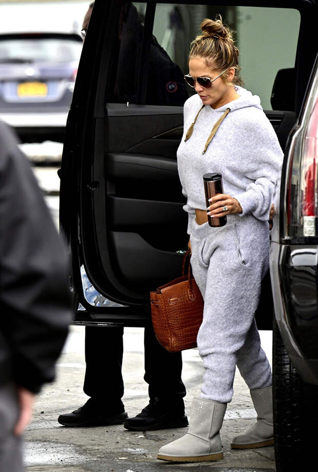 Дженнифер Лопес удается выглядеть эффектно даже в самых прозаичных вещах. Так, когда накануне днем поп-дива отправилась на съемки в невзрачном на первый взгляд сером спортивном костюме, ее все равно нельзя было не заметить. Расслабленный образ дополняла любимая сумка знаменитости - вместительная Hermès Birkin из рыжеватой крокодиловой кожи.