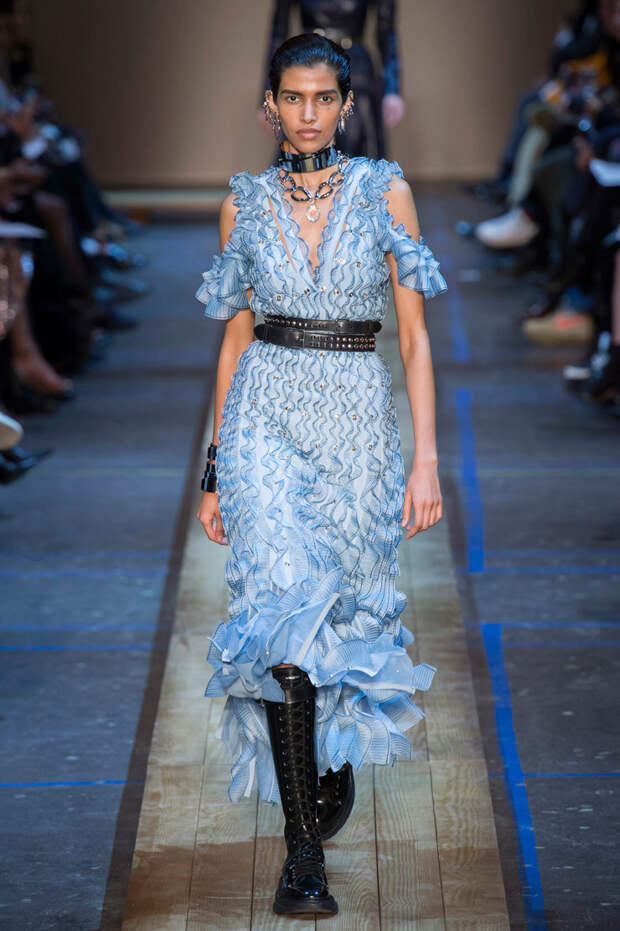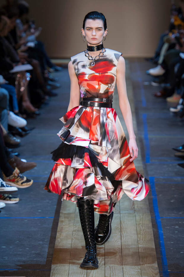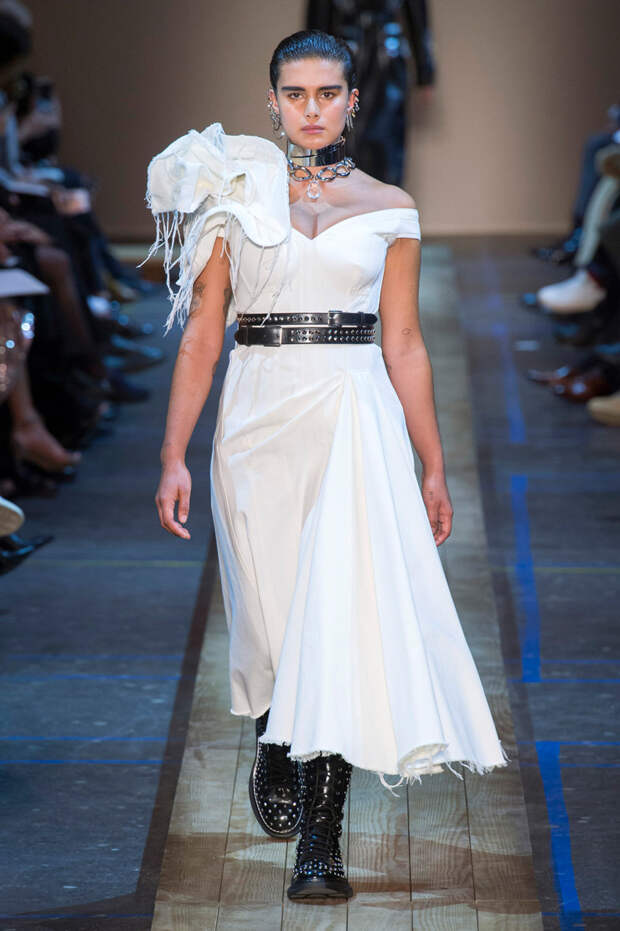 Ради ее создания Сара Бертон, креативный директор Дома, погрузилась в воспоминания о собственном детстве в Северной Англии — и в рефлексию о том, из чего же "сделана" ее страна. И захватила одновременно и романтику вересковых пустошей сестер Бронте, и подростковое бунтарство панков, и музыкальную new wave историю, и жуткие викторианские времена, и британские текстильные и швейные традиции. И коллекция получилась одновременно про все упомянутое — максимально при этом гармоничная.