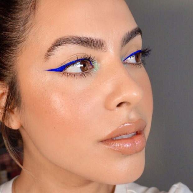 Один из самых простых и трендовых способов носить синие тени — это smoky eyes, который способен визуально увеличить глаза. Еще один верный способ — графическая подводка. Попробуйте заменить черную подводку, например, на голубую и нарисуйте стрелки в стиле «кошачий глаз». Также хорошим вариантом станет нанесение бледно-синего оттенка на нижние линии ресниц.