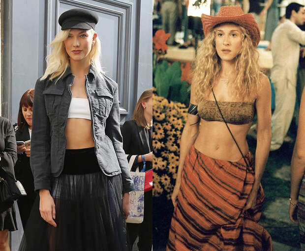 В числе главных поклонниц Кэрри - Эмили Ратаковски (и ее узнаваемые платья-рубашки), Ким Кардашьян (любительница коротких платьев в облипку) и Белла Хадид (а откуда еще, думаете, такая страсть к сумкам-багетам?). В этой подборке - 13 самых ярких примеров, доказывающих, что порой новое - это хорошо забытое старое. Кажется, пора и нам в очередной раз пересмотреть “Секс в большом городе”!