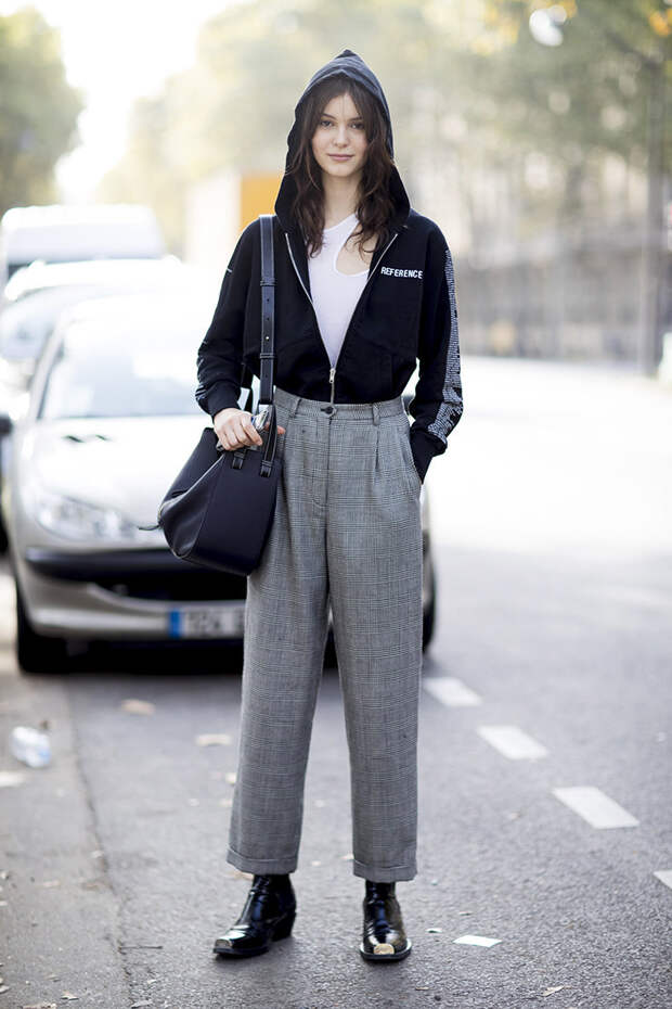 Вечная классика вроде прямых или слегка зауженных брюк со стрелками тоже может приятно разнообразить гардероб. С джинсами создать расслабленный образ гораздо проще, но спортивные вещи с ними смотрятся немного скучно. Другое дело — сочетать худи, ветровки, поясные сумки и модные модели кроссовок с вещами, традиционно предназначенными для офиса.