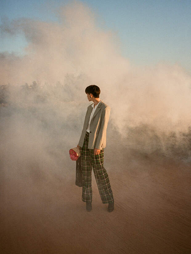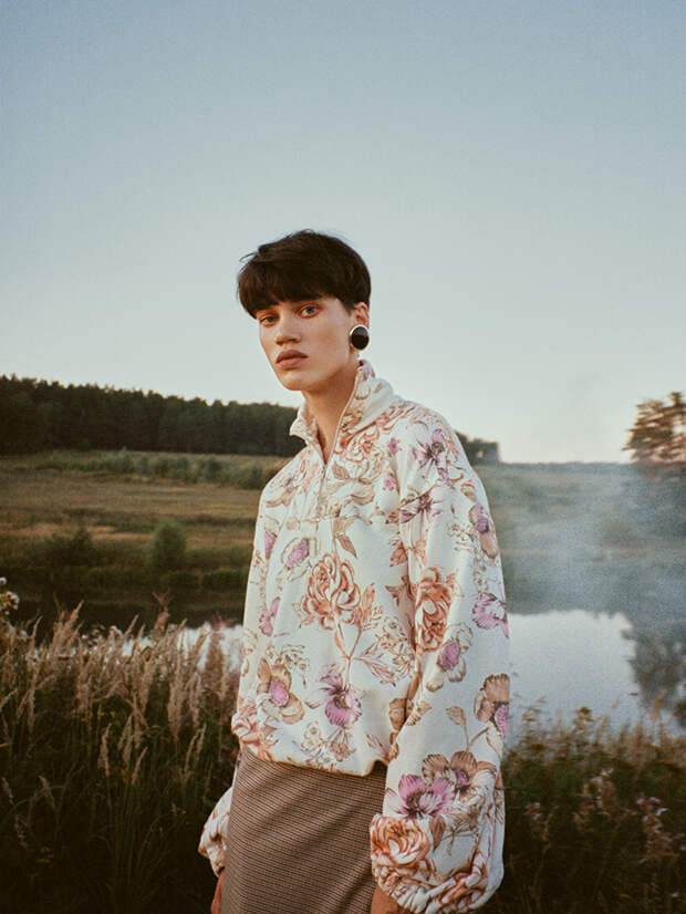 В целом же все цветовые решения в коллекции – отсылка к знаковым работам Марка Шагала из серии “Любовники”. Отсюда – обилие насыщенного зеленого, страстного красного, глубокого синего – именно эти оттенки особенно любил знаменитый художник-авангардист.Лукбук же неспроста снят на пленочный фотоаппарат: это помогает проникнуться особым настроением и мысленно окунуться в 80-е.