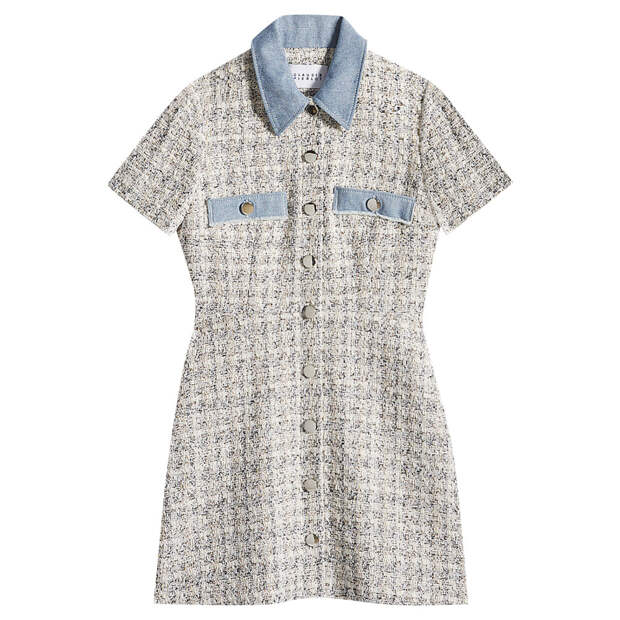 В офисе с нестрогим дресс-кодом твидовое платье — настоящее спасение для гардероба. Ведь его можно обыгрывать множеством разных способов и носить любую погоду. Если зимой мы будем дополнять его плотными колготками и шерстяными жакетами, то летом его лучшим компаньоном станет пара легкой плетеной обуви. И эспадрильи на танкетке будут здесь как нельзя кстати.