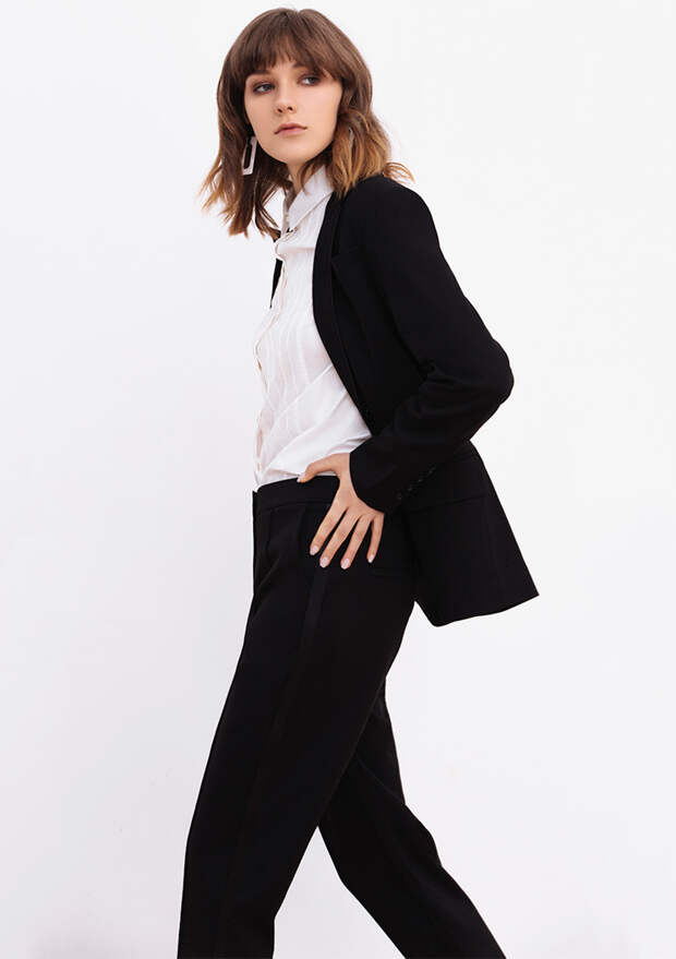 Демократичная линейка Алены Ахмадуллиной в предпраздничный сезон радует модниц капсульной коллекцией, в которой есть как идеально подходящие для встречи нового года наряды (особенно - платья-халаты в пайетках), так и элегантные образы, которые будут уместны и в офисе (например, брючный строгий костюм с белоснежной блузкой).