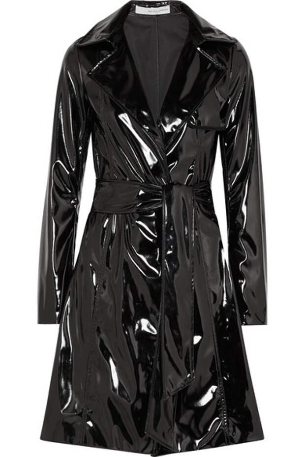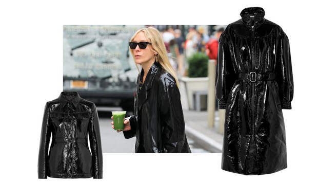 Даже летом бывают прохладные дни, когда поверх легкого платья хочется накинуть что-то сверху. Если образы с базовым бежевым тренчем или джинсовкой вам надоели, предлагаем обратить внимание на плащи и куртки из винила. Модный ориентир – актриса Хлоя Севиньи во время недавней прогулки по Нью-Йорку.